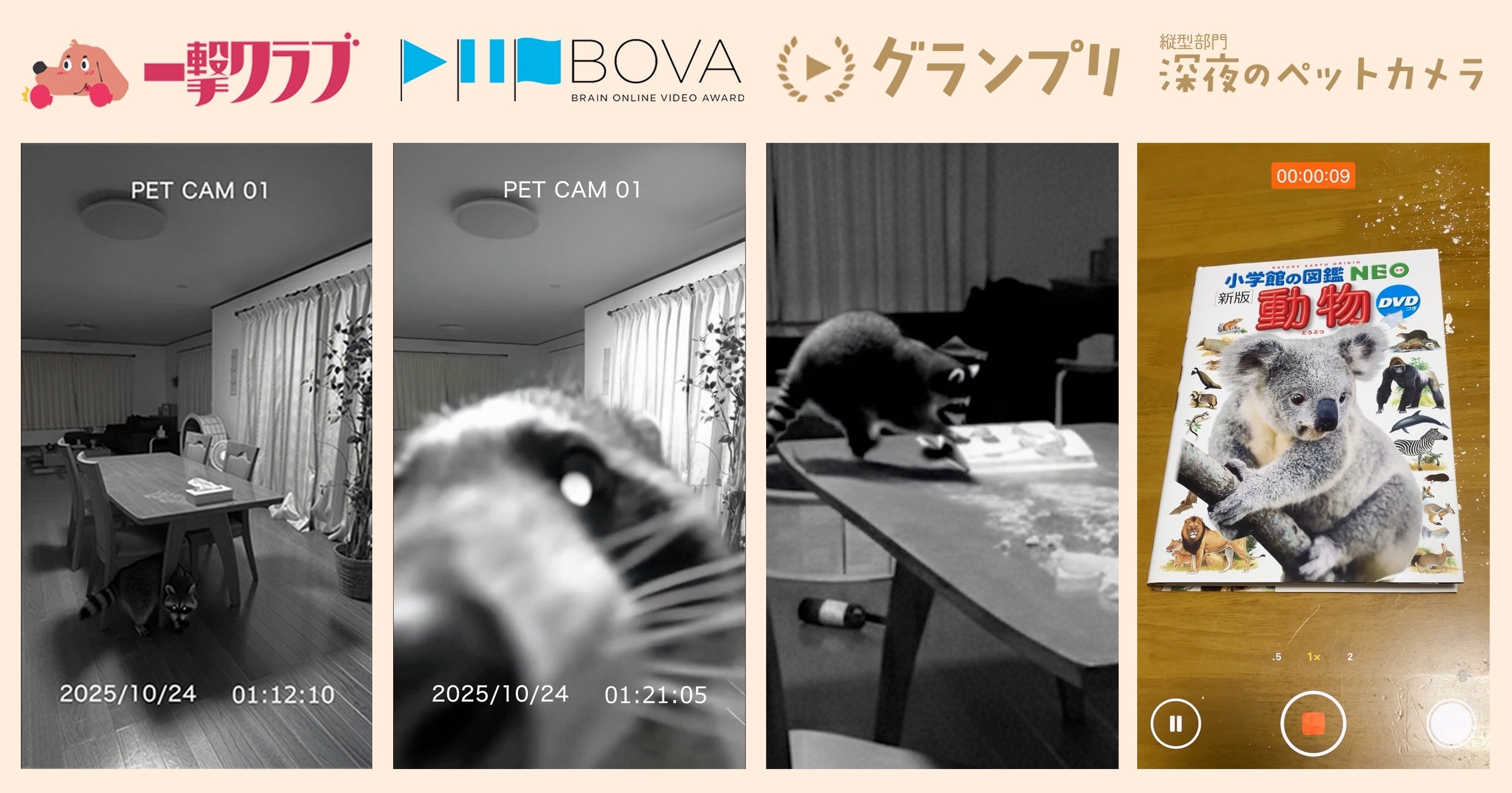 コンセプトは「実写×AIの融合」です。小学館の図鑑NEOが「本物=動物でさえ夢中にさせる」というアイデアを、ペットカメラを使ったモキュメンタリーにしたら面白くなる予感がありました。ただ、「AIでつくりましたよ感」が香ると途端に冷めてしまうので細心の注意を払っています。実写で撮影しながら、その場で何度も何度も何度もアライグマの生成を繰り返しています。リアルに感じながらもクスッと笑えるバランスの表現を目指しました。