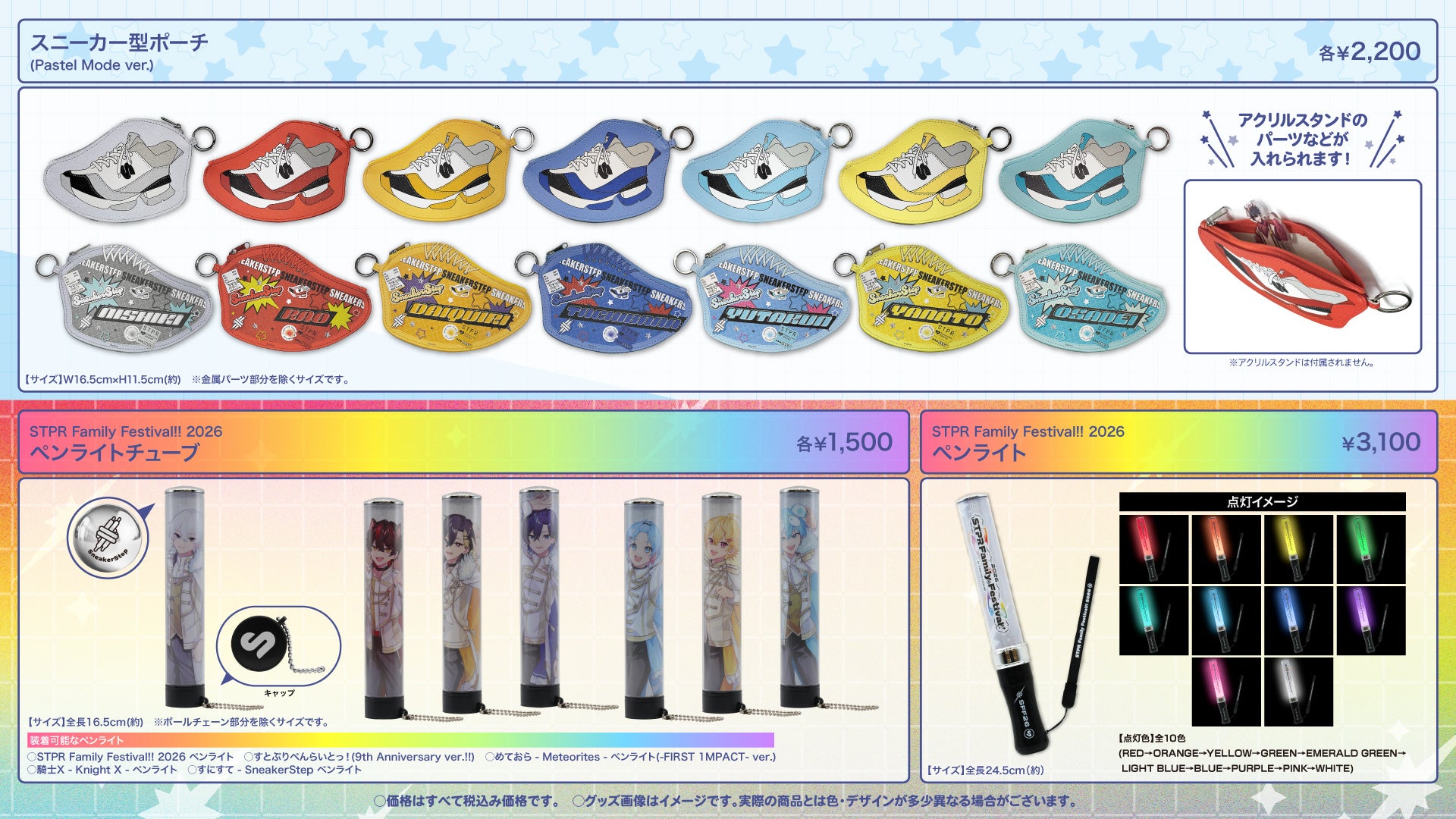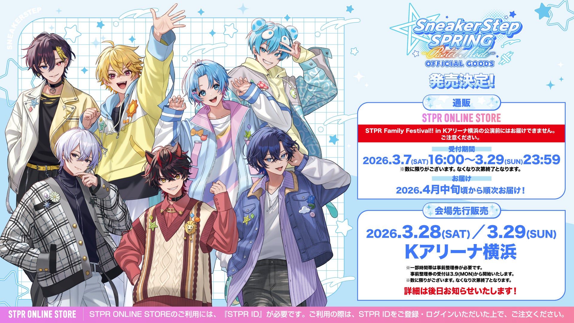 また、2026年3月28日(土)・29日(日)に開催される『STPR Family Festival!! 2026 in Kアリーナ横浜』会場で先行販売いたします。※数には限りがございます。なくなり次第終了となりますので、あらかじめご了承ください。