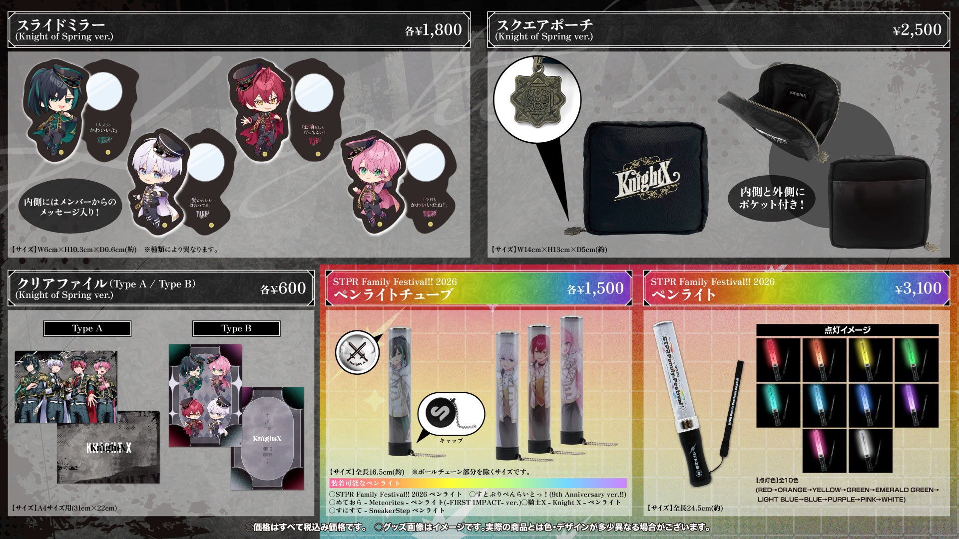 株式会社STPR(本社:東京都渋谷区 代表:柏原真人、以下「STPR」)は、当社所属の2.5次元アイドル・歌い手グループ「騎士X – Knight X -(通称:騎士X)」「すにすて – SneakerStep Prod.STPR MUSIC(通称:すにすて)」による春シーズン限定グッズ情報を公開、2026年3月7日(土)よりSTPR ONLINE STOREにて販売開始いたします。