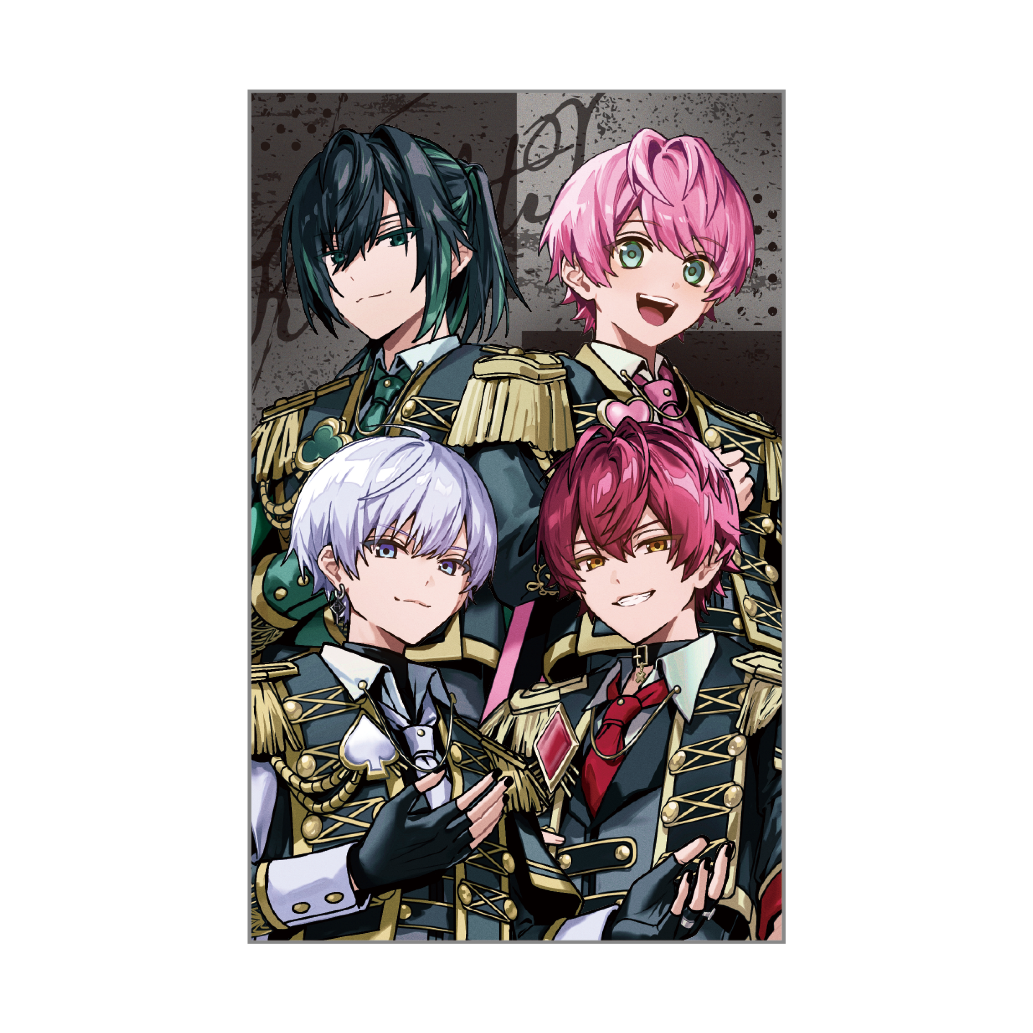 「騎士X」春グッズのビジュアルは、ナポレオン風ジャケットをベースに、メンバーごとにさりげなくアレンジを加えたアーティスト風デザインです。全7アイテムの新作グッズが登場。ミニキャラデザインの「スライドミラー」は、スライドするとメンバーからのメッセージが現れる仕様で、細部までこだわったデザインが特長。新生活にも取り入れやすいサイズ感も魅力です。あわせて、内側に3つ、外側に1つのポケットを備えた「スクエアポーチ」もラインナップ。引手にはトランプマークと剣をあしらったオリジナルデザインを採用しています。