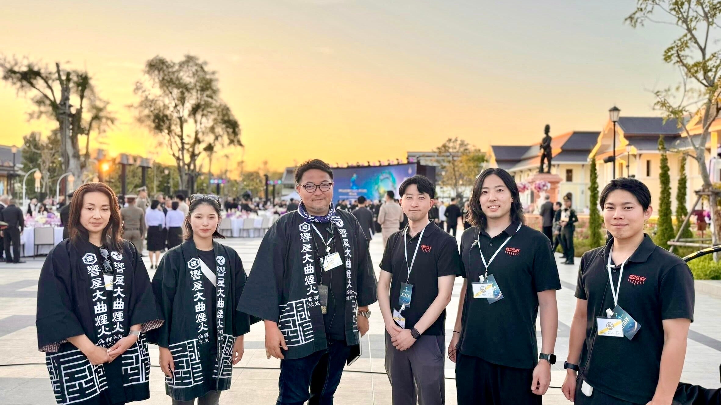 今回の取り組みでは、日本から機材・資材を輸送し、設営・運営を含めレッドクリフおよび響屋大曲煙火株式会社が主導して実施しました。輸送体制や電波環境、法規制への対応など、日本とは異なる条件下での実施となりましたが、国内で培った技術とノウハウにより無事に終えることができました。
