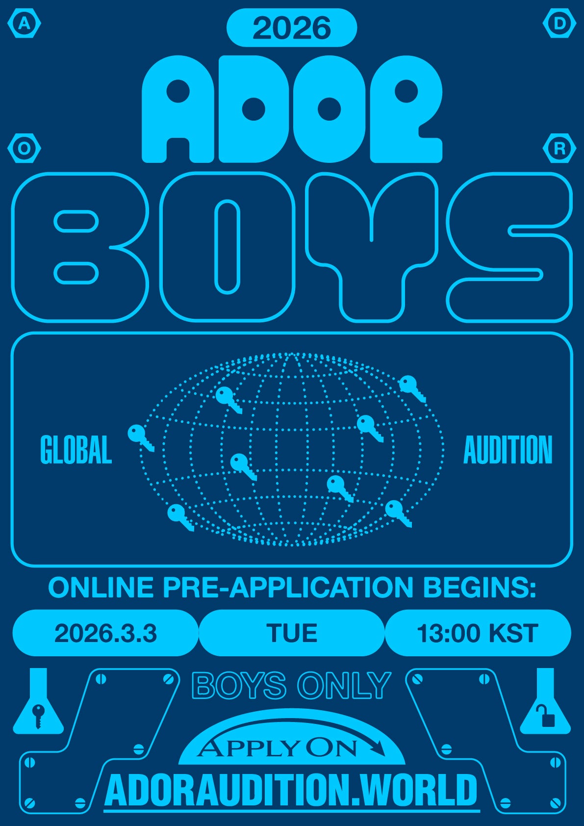 HYBE MUSIC GROUPのレーベル、ADORは、世界の主要11都市でボーイグループのメンバーを募集する「2026 ADOR BOYS GLOBAL AUDITION」を開催します。