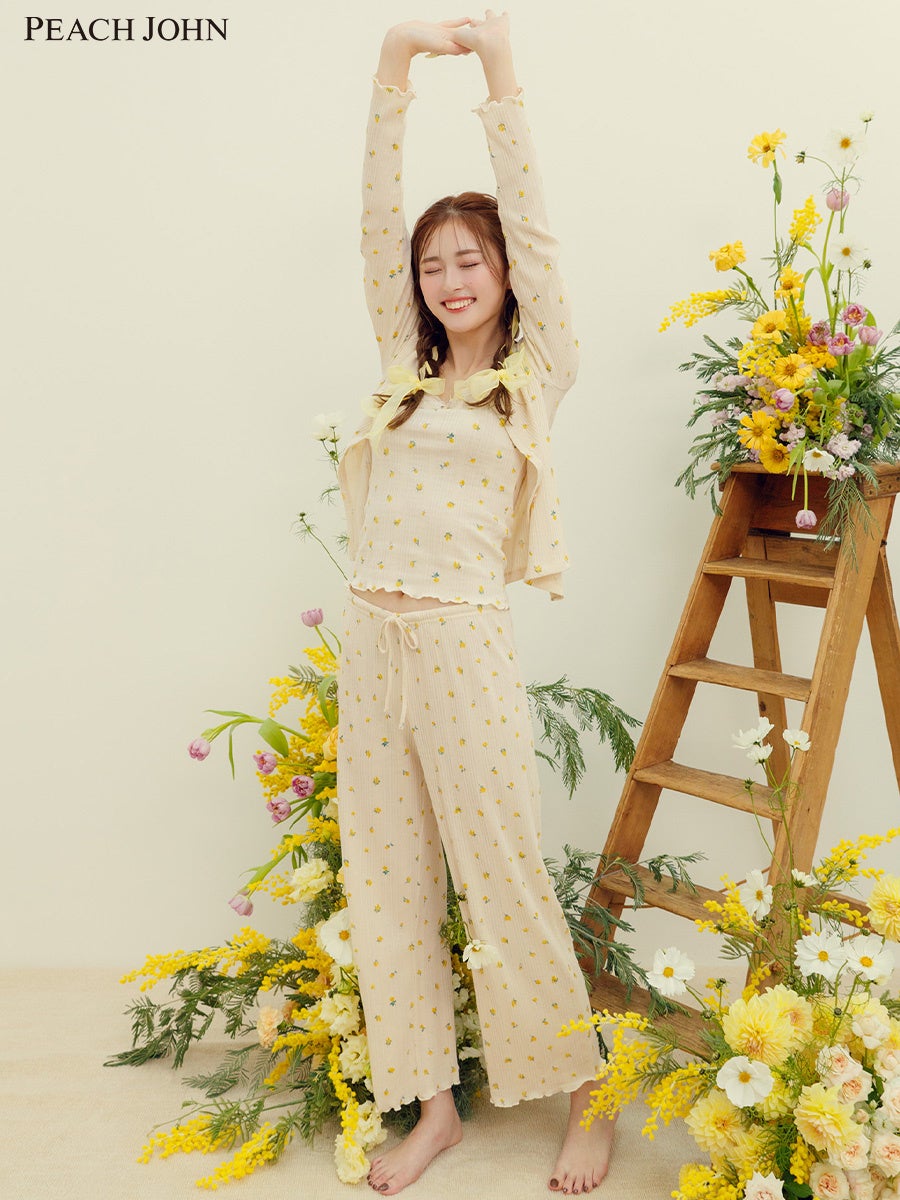 身生地には、ストライプ状に小穴をあしらった針抜きのコットン混リブ素材を使用。柔らかな肌ざわりと適度な厚みで、快適な着心地を実現しました。透け感が気になりにくく、リラックスタイムをより心地よく過ごせます。年代を問わず愛される優しげな小花柄は、ギフトにもおすすめなアイテムです。