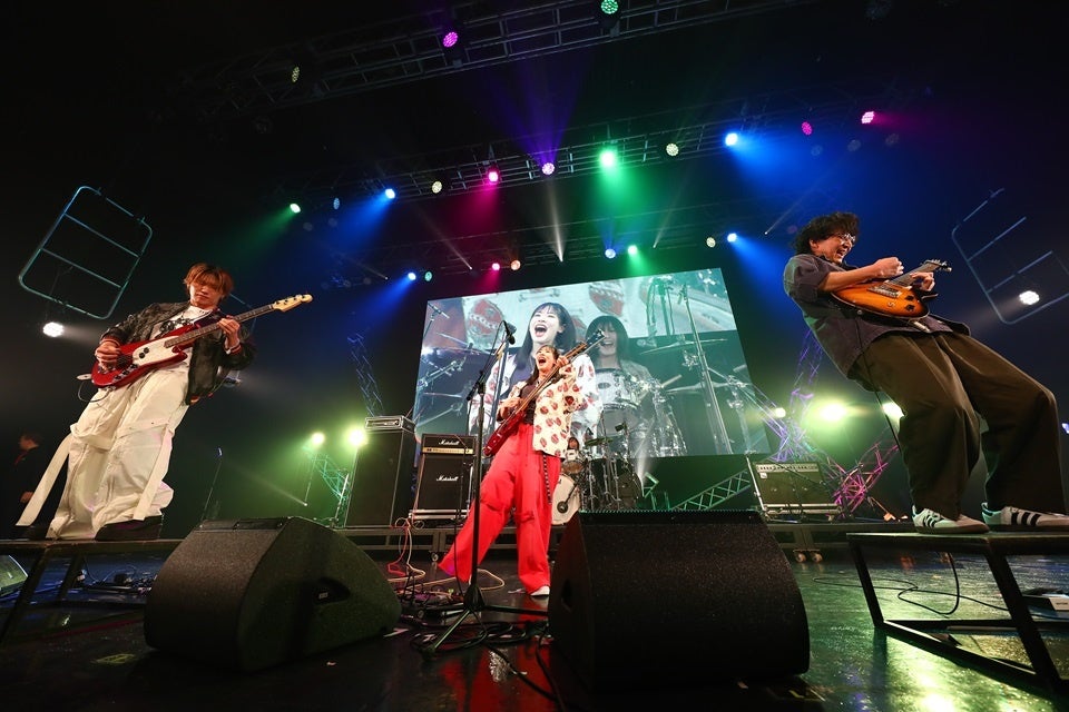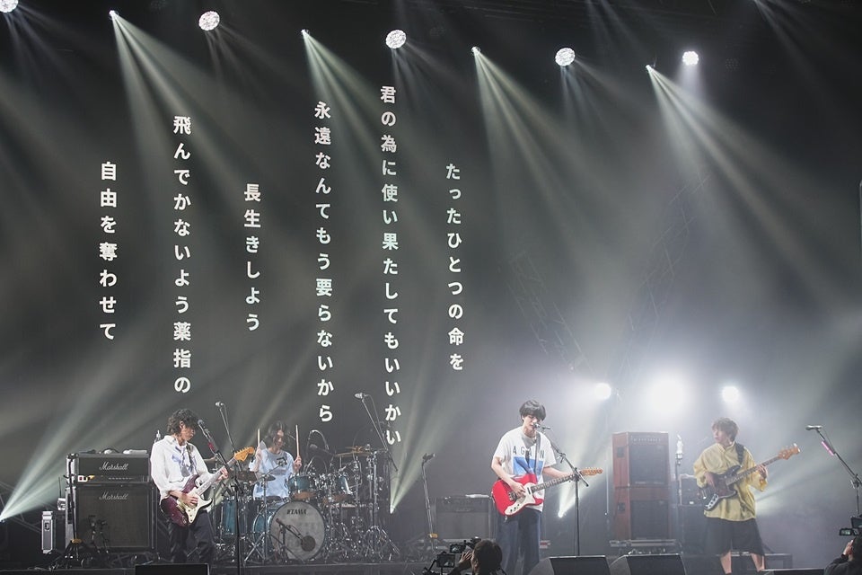 続いて登場したのは、TikTokに雲グミ名義で投稿していたシンガーソングライターの美咲(Vo,Gt)とボカロP・もの憂げとしてミリオン曲を持つさすけ(Ba)を中心に2024年9月に結成された新星バンド、ミーマイナー。「オンリーロンリータウン」で切なくもチャーミングな歌声を響かせた美咲は、「実は私は、12歳の時から夢を追いかけて活動を続けてきて、あっという間に10年が経ってしまいました」とゆっくりと語り始めた。地元の名古屋から上京した15歳の時のことや過去の活動を振り返りながら、「ミーマイナーは、夢や居場所、希望や仲間を失った経験のあるメンバーで結成されたバンドです。だからこそ、今、この瞬間が心の底から大事だとわかっています。私はこの居場所を、人生を賭けて守り抜く。あなたの居場所になってくれたら嬉しいです」と目に涙を溜めながら決意を表明。手書きの歌詞と楽しそうなオフショットが映し出されたスクリーンをバックに「君の言う通りだった」を真っ直ぐに歌い上げた彼女の確かなエモーションを込めた歌声と弱さを隠さない等身大のMCに心を奪われた人も多かったはずだ。