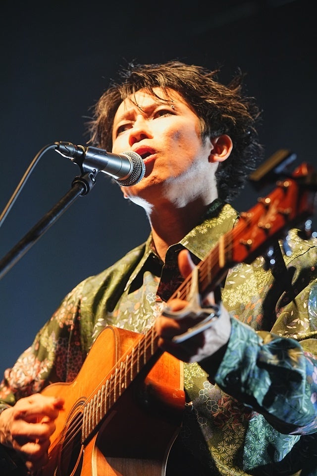 ここで、SMLマネジメント所属するデスメタルシンガーの杉本ラララが登場。昨年6月にインパクトの強いアーティスト写真とともに“悪魔”に転生し、さらに8月には“死神”に転職することを発表。強烈な個性的を携えたキャラクターと歌唱力の高さで大きな話題を呼んだ彼は「人生をもがき楽しむ」を座右の銘として活動するシンガー。ハンドマイクを持ってステージにふらりと現れた彼は「阿鼻叫喚に満ちたおぞましきデスメタルシンガーの杉本ラララ!」と絶叫。観客に向けて「死神なんだぞ」と語りかけながら、人間の年齢で言うと41歳であることを明かし、「41歳でソニーの新人。夢があるだろう。続けてみるもんですね」と感慨深げに語ると、「これから歌う曲は鬱で苦しんでる人、心がしんどい人に向けて描いた曲です」と解説。アコースティックギターの弾き語りで「ゴライコー」を熱唱。生と死、痛みと癒し、光と影をテーマにした人生讃歌で<一緒に生きていこう!>と絶叫と共に呼びかけると、言葉にならない声で咆哮。強靭な歌声ひとつで観るもの全てを圧倒した。