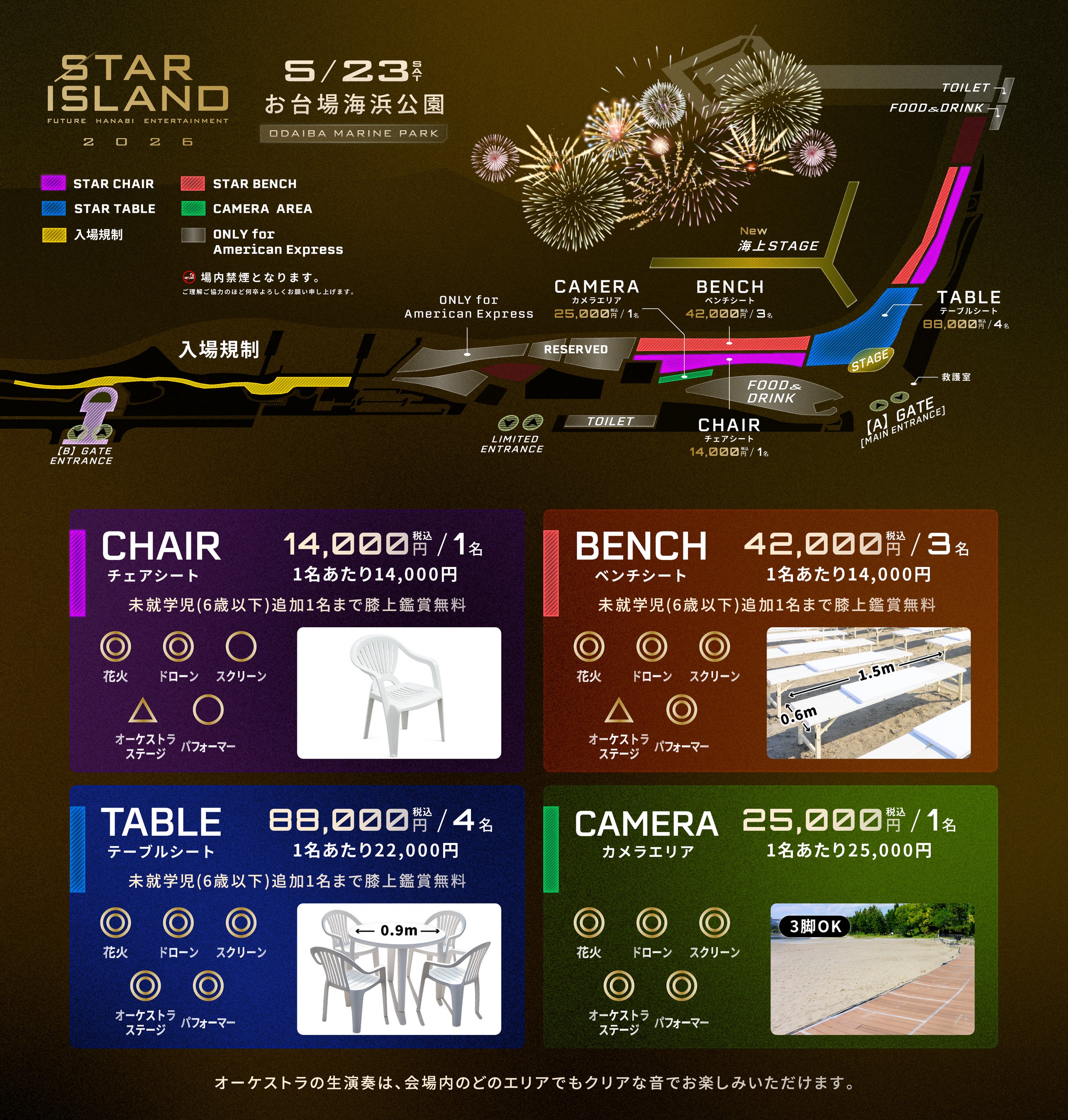 ・STAR BENCH:¥42,000(税込)/1-3名*未就学児(6歳以下)追加1名まで膝上鑑賞無料