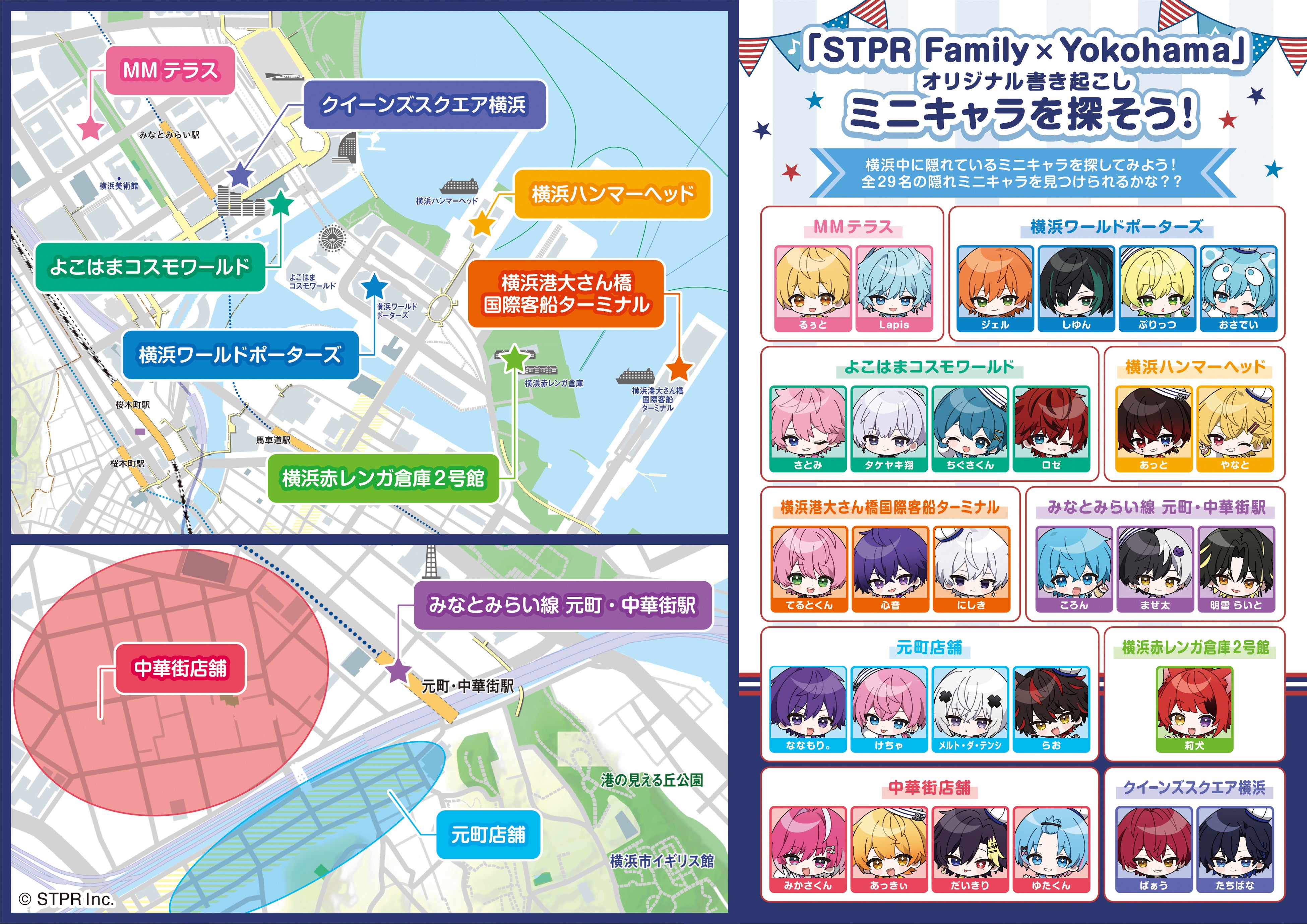 横浜の街に隠れている「STPR×Yokohama」オリジナル描き起こしのミニキャラを探してみよう!全29名のミニキャラを見つけられるかな??