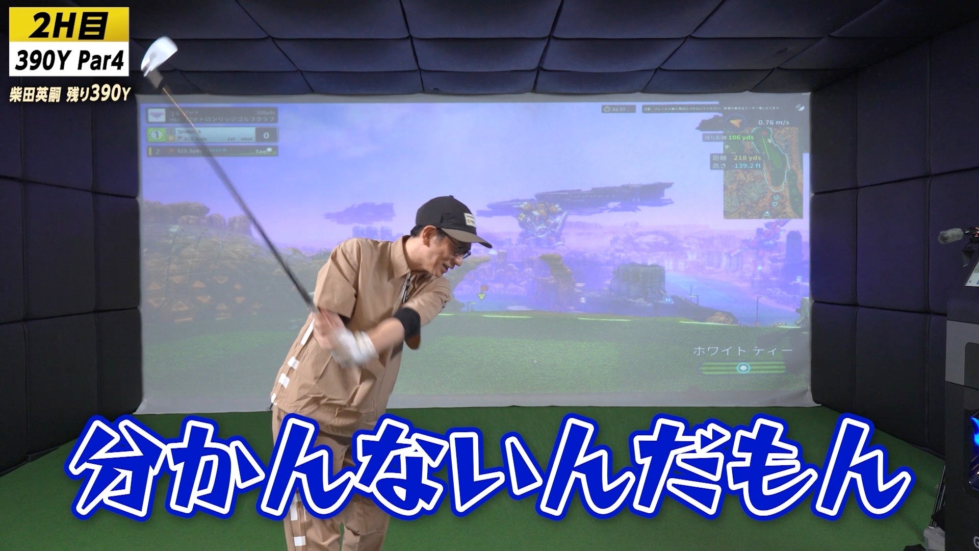 しかし、試合が進むにつれてバーチャルならではのコース特性や距離感に翻弄される場面も。現実のゴルフ場とは全く異なる感覚に混乱しながらも、攻略法を探っていく二人の勝負の行方に注目です。