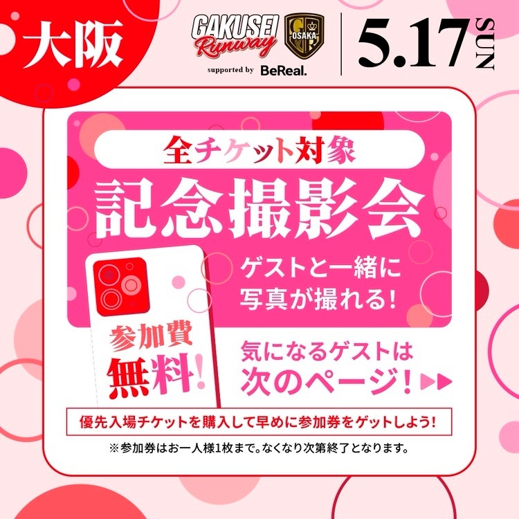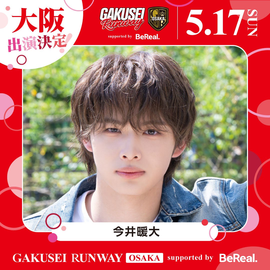 「GAKUSEI RUNWAY 2026 SUMMER in OSAKA supported by BeReal」開催につき、 ゲストの出演を発表しました。 Z世代から絶大な人気を誇るゲストのランウェイや、アーティストライブを学生ランウェイでしか見られないスペシャルなステージでお楽しみいただけます。