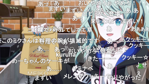 第4位 ストリートのセカイのミクがMEIKOとクッキーを作る場面