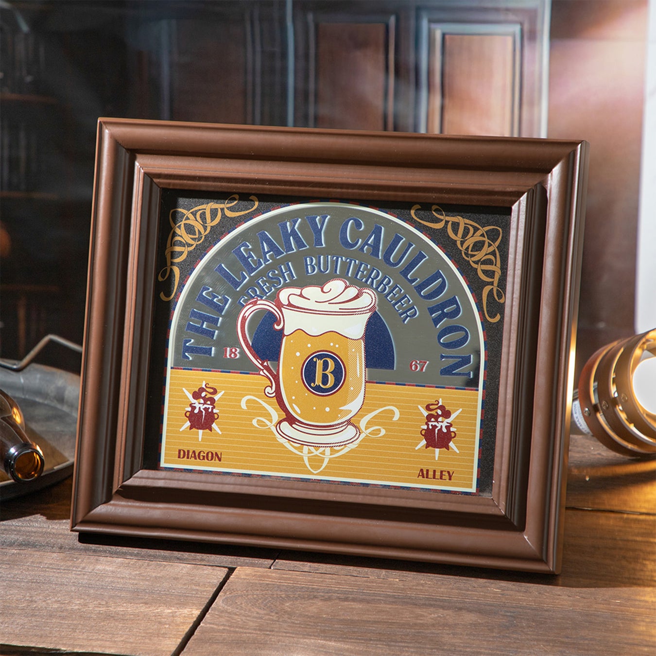 華やかなアートワークが印象的な壁掛けとスタンドの2wayで飾れるパブミラーとジョッキを模したデザインのキーホルダー、バタービールの王冠をイメージしたピンズの3アイテムがラインアップ。いずれのアイテムもどこかレトロな雰囲気で高級感があり、なかでもキーホルダーはバタービールのもこもことした泡部分を立体で表現し、バタービールをイメージしたカラーの液体が入った遊び心あふれる仕様です。