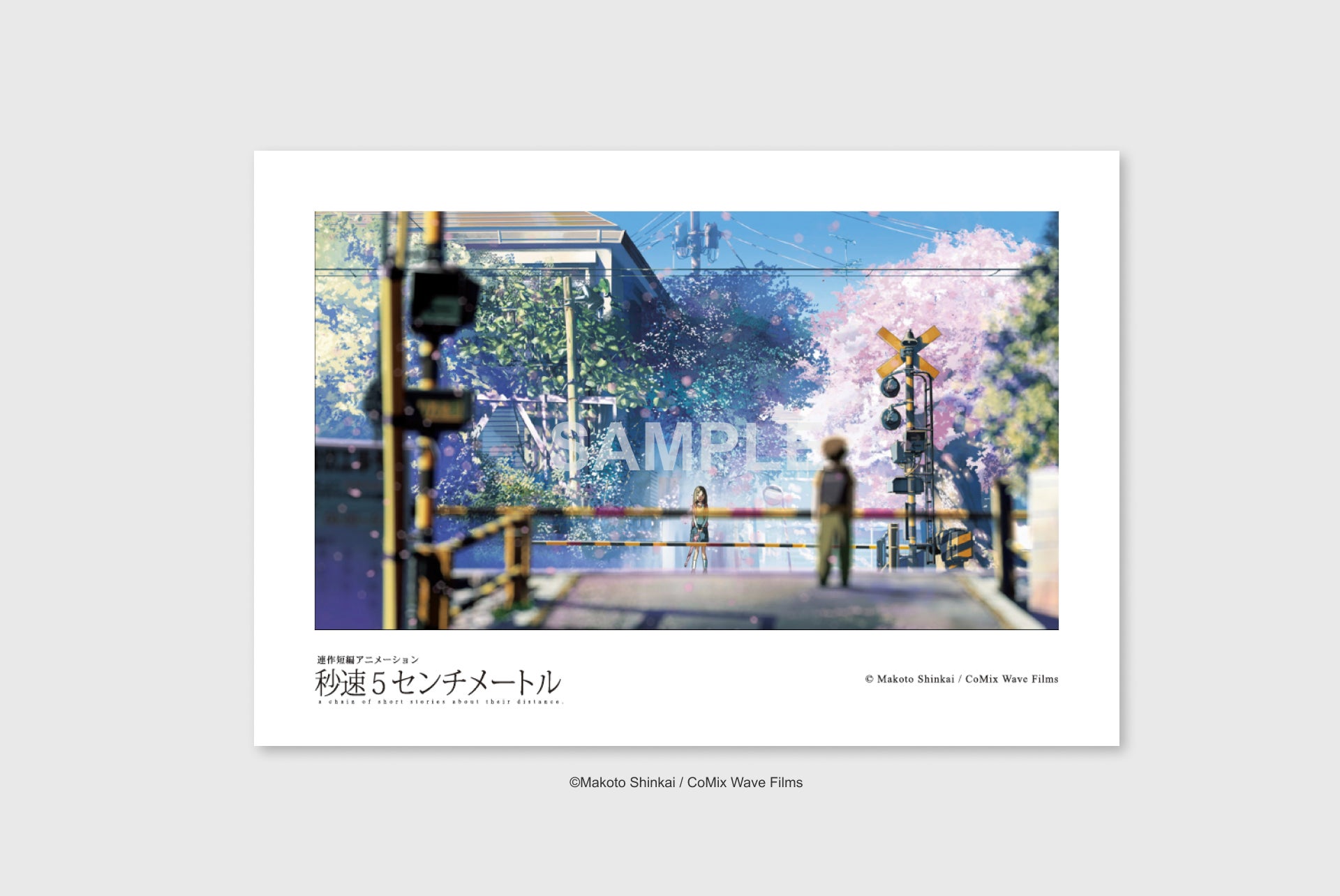 入場者プレゼントは、桜の花びらが舞う中で幼少期の明里と貴樹が踏切を挟んで向かいあう場面が描かれたポストカード。本シーンは、新海誠監督が制作した本作の主題歌「One more time,One more chance」のPVにのみ含まれ、映画本編には登場しない貴重なシーンであり、”桜前線”上映にふさわしい彩り美しいアイテムとなっています。詳細は「入場者プレゼント情報」をご覧ください!