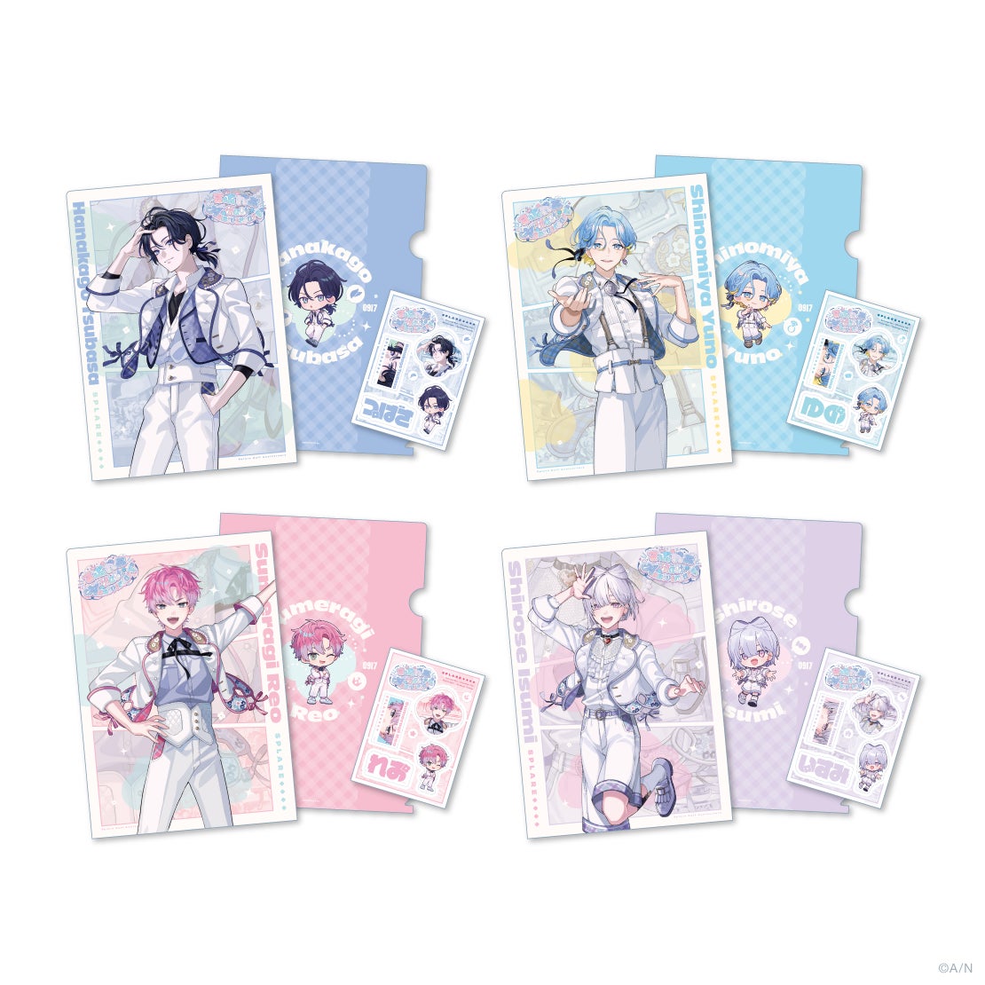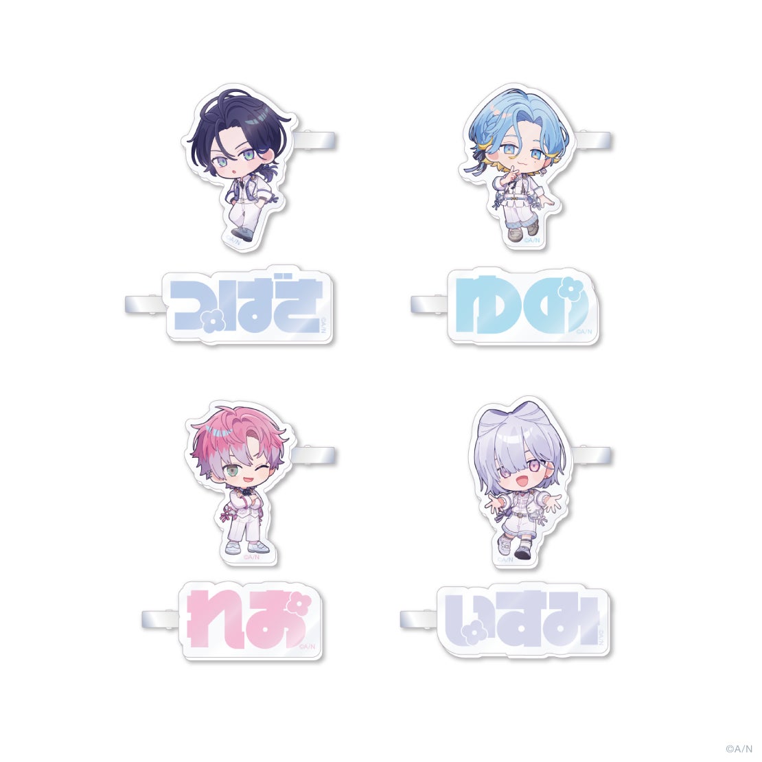 グッズラインナップは、撮りおろしビジュアルを使用したラメアクリルスタンド、ランダムチェキ風カード、ランダム缶バッジ、ラバーストラップ、アートボード、クリアファイル&ステッカーセット、ヘアクリップセット。