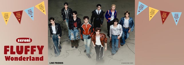 LINE FRIENDS と ZEROBASEONE が一緒に作ったキャラクター「zeroni」のぬいぐるみやフード付きブランケット、マグネットフォトホルダー、ポーチなどが登場。