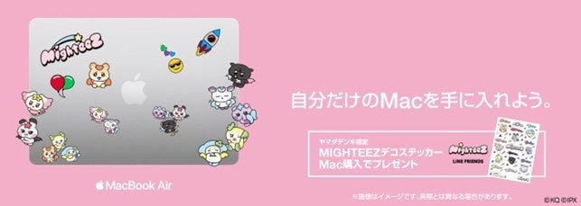 また、Macをご購入のお客様にMIGHTEEZのオリジナルデコステッカーをプレゼントするキャンペーンを、ヤマダウェブコムおよびLABI池袋本店にて実施します。