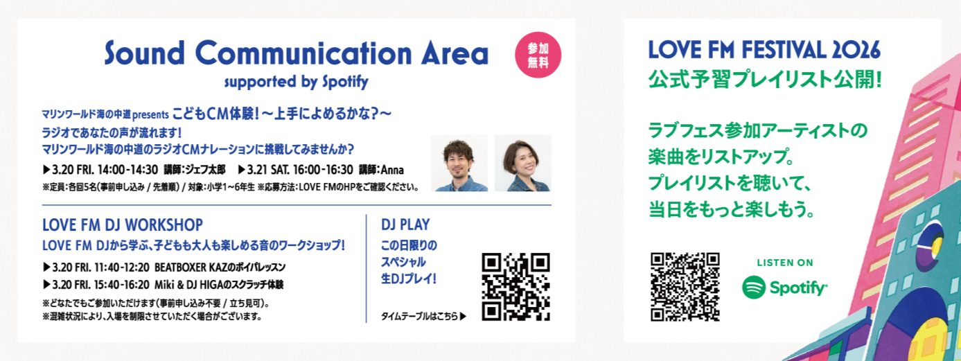 【入場無料】LOVE FM FESTIVAL 2026開催!音楽、グルメ、ワークショップ、インタラクティブなラジオ体験