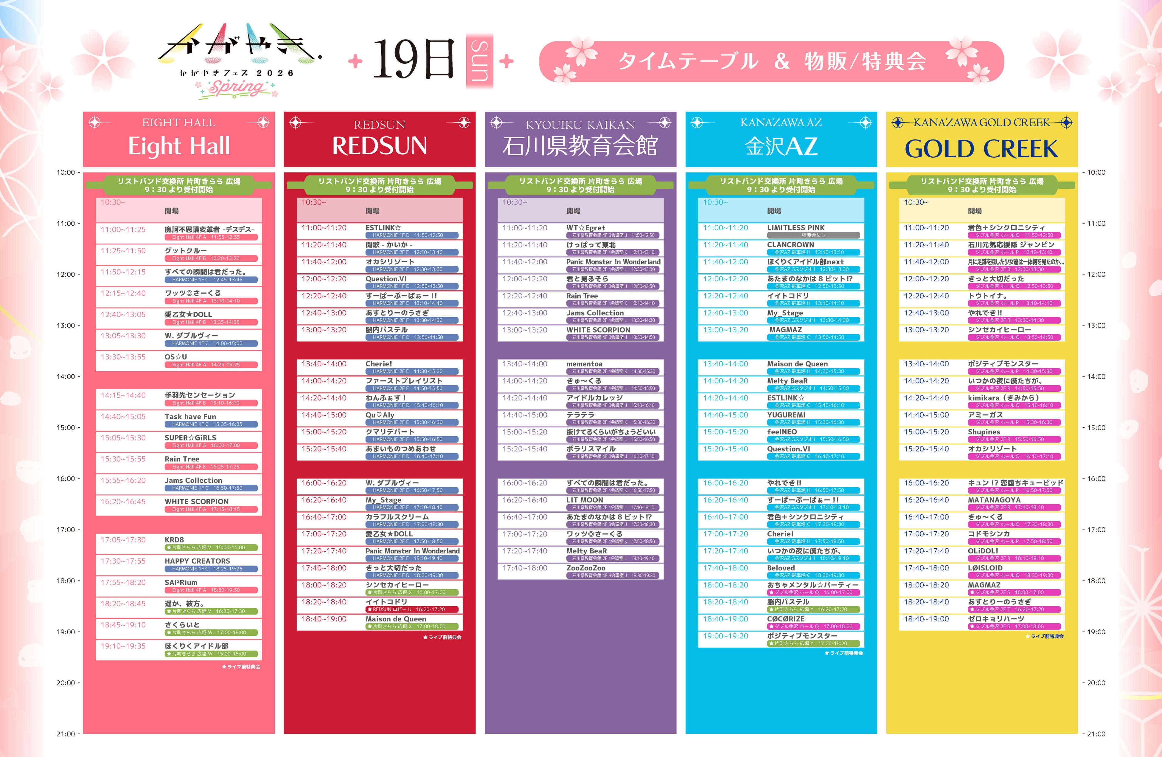 19日(日)出演・特典会タイムテーブル