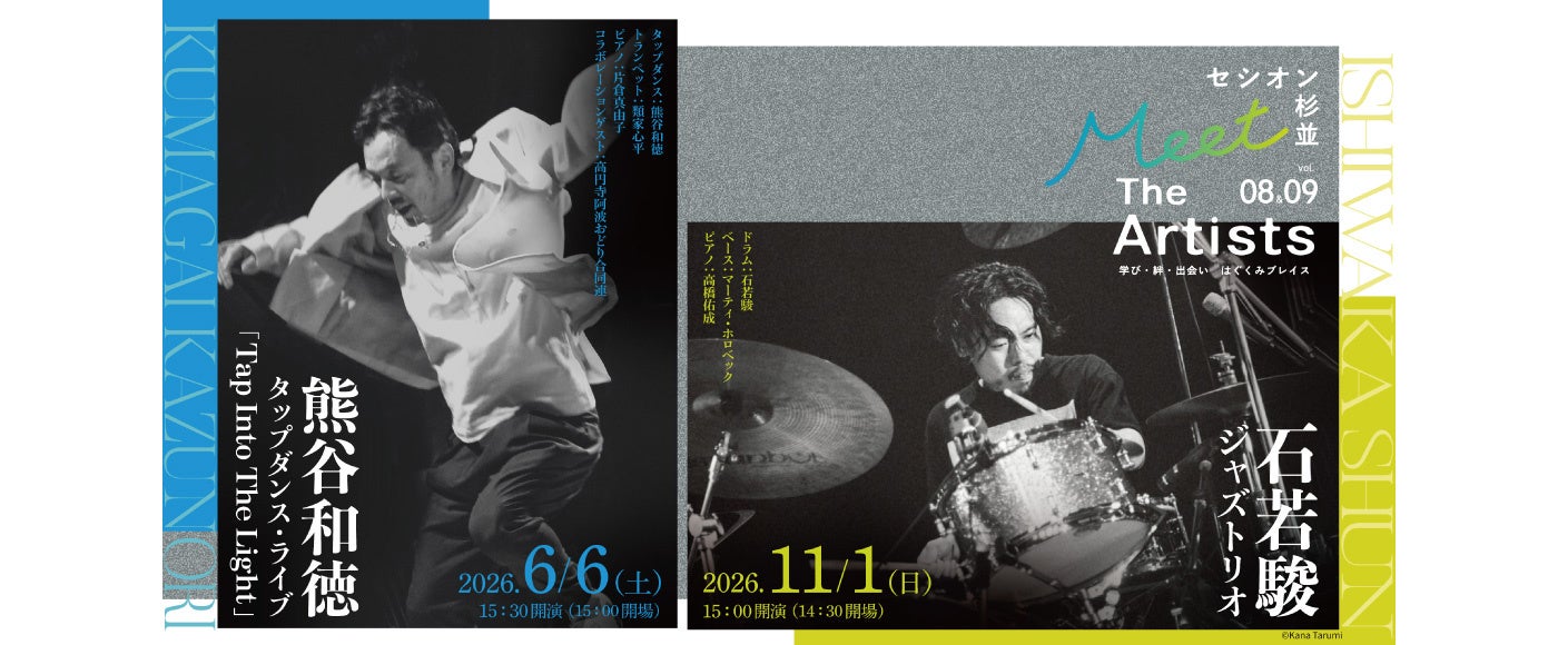 “本物のアーティストと出会える原体験の提供”をテーマに2024年にスタートした『Meet The Artists』シリーズ。2026年度は、日本を代表する世界的タップダンサー・熊谷和徳(vol.8)、現代日本最高峰のドラマー・石若駿(vol.9)を迎え、リズムそのものが主役となるパフォーマンスをお届けします。