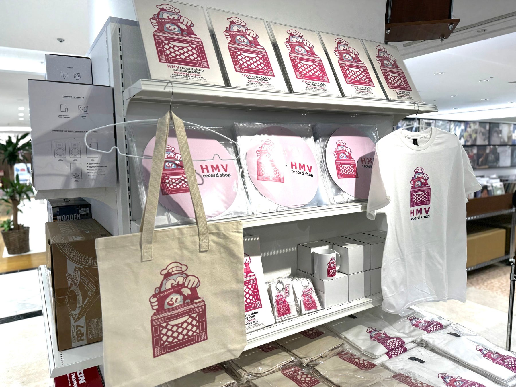 さらに、店舗オープンを記念し、大阪出身でロサンゼルスを拠点に活躍するグラフィティ・アーティストCOOK氏による描き下ろしビジュアルを使用した「HMV record shop × COOK」限定コラボグッズの販売や、先着にてスタジオジブリコラボショッピングバッグでの商品お渡しなど、様々な企画も実施しております。