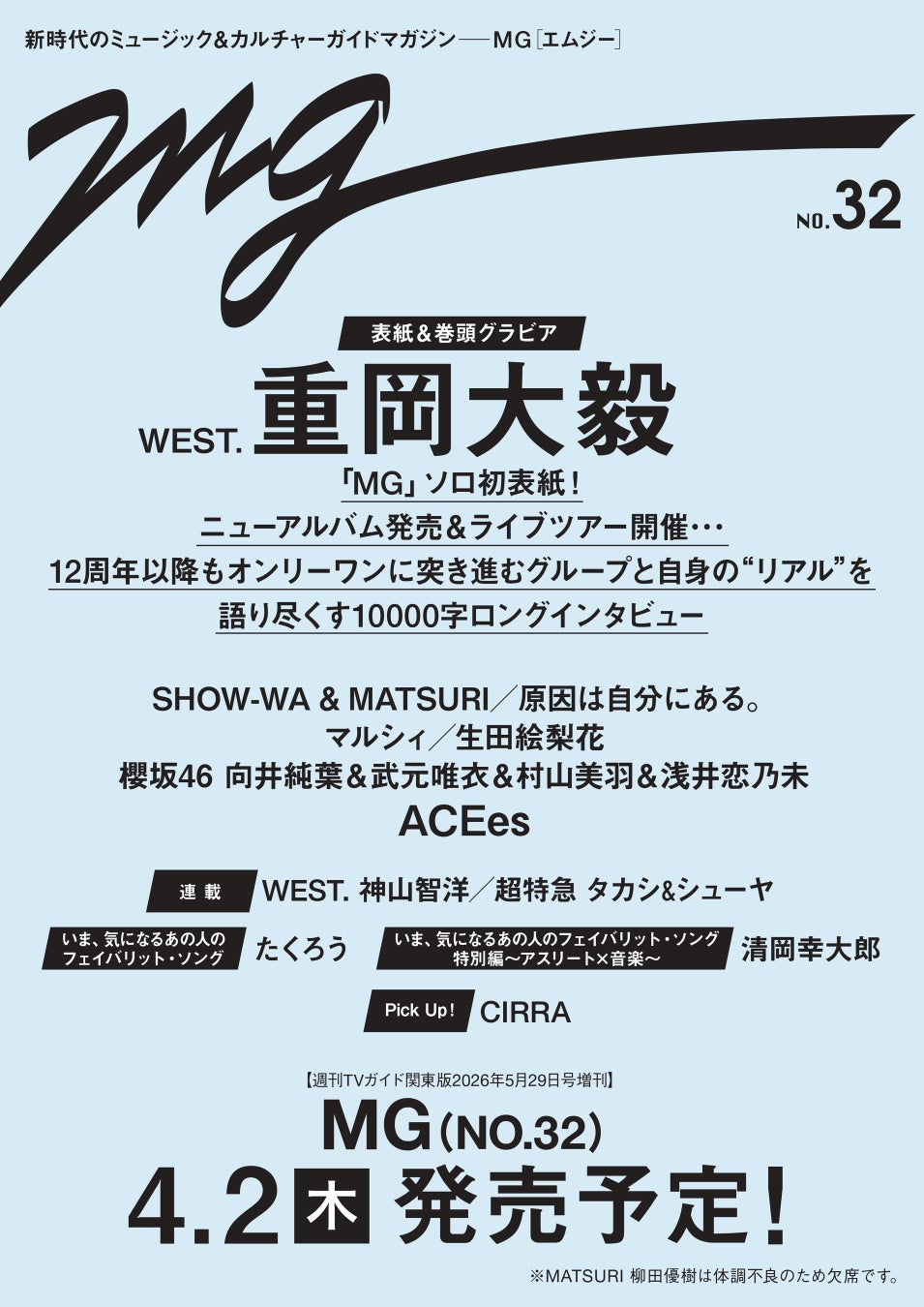 「週刊TVガイド関東版2026年5月16日号増刊 MG(NO.32)」4月2日(木)発売