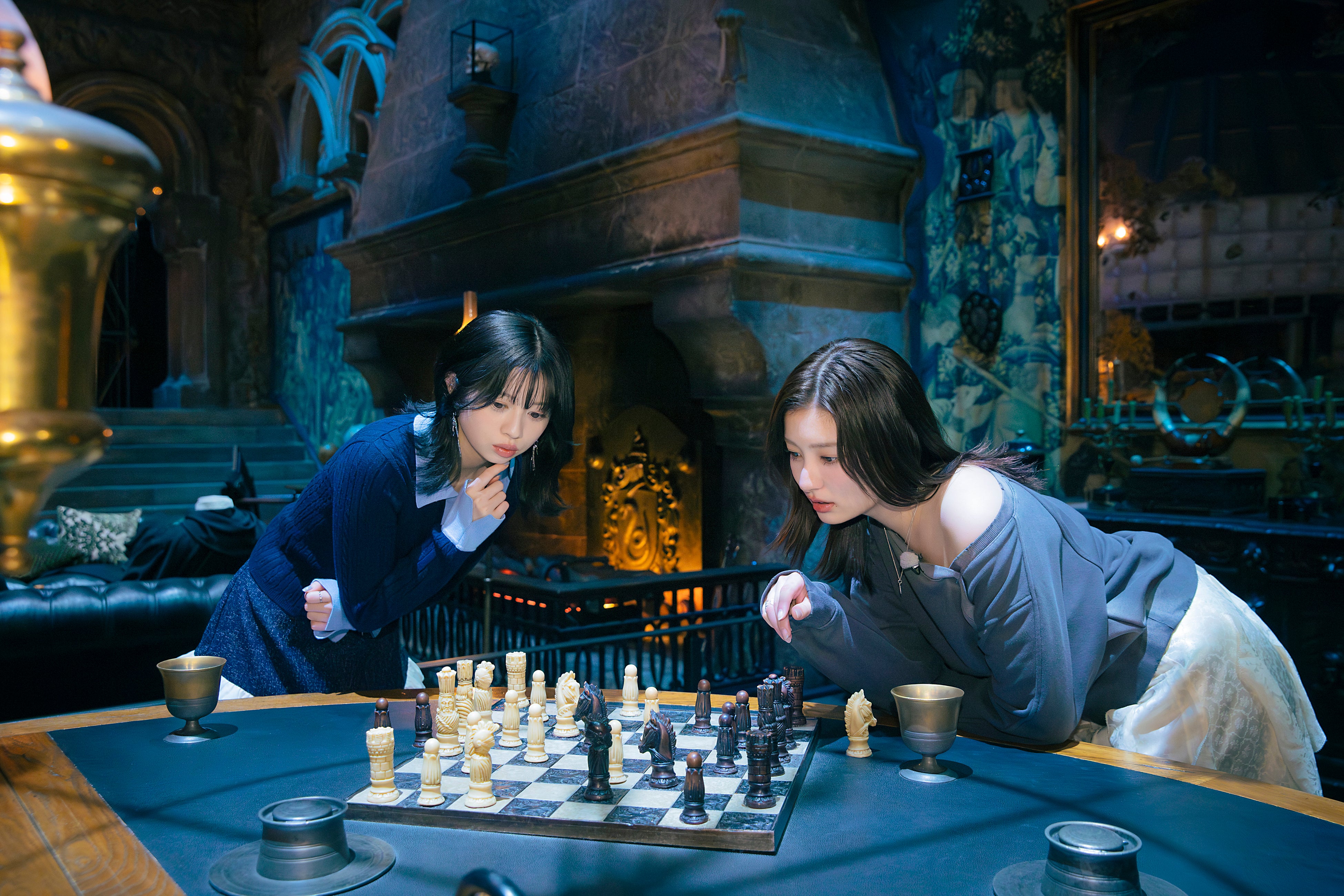 「父の影響でハリー・ポッター作品に出会った」という桜田さんと、「一番好きな作品は『ハリー・ポッターと賢者の石』」と語る吉川さん。ファンになったきっかけを語りながら、大広間のセットへ。3月18日から始まる特別企画「ホグワーツからの招待状」で展開される<組分けの儀式>の話題におよび、新入生が所属する寮を決定する<組分けの儀式>ごっこで大盛り上がり。壁一面に飾られた肖像画のなかに入ることができる「動く肖像画体験」では、ハリーたち“新入生を迎える先輩”という設定で撮影ブースにてポージング。映し出された自分たちの姿に笑いあう場面も。