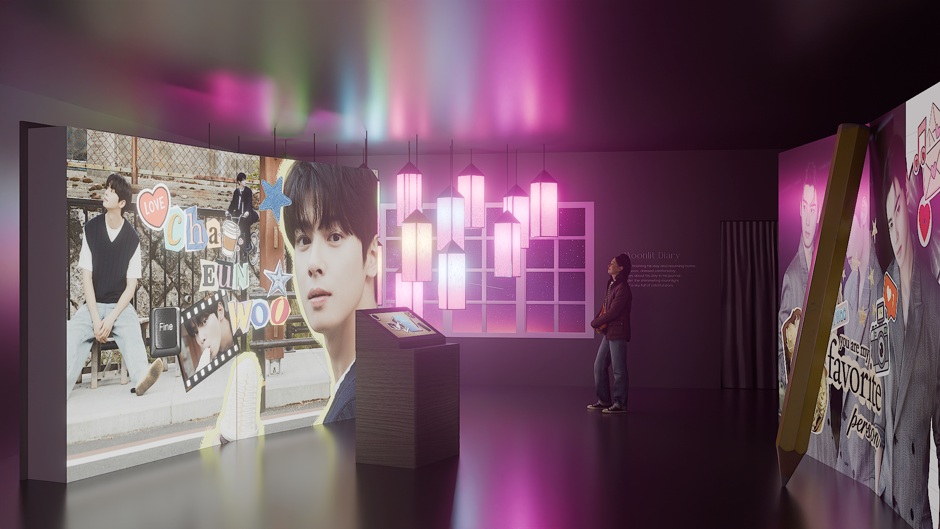 展示は、チャウヌと共に過ごす「何気ない一日」をテーマに、​夜明けから深夜まで流れる時間の中で体験できるビハインド空間として展開されます。​