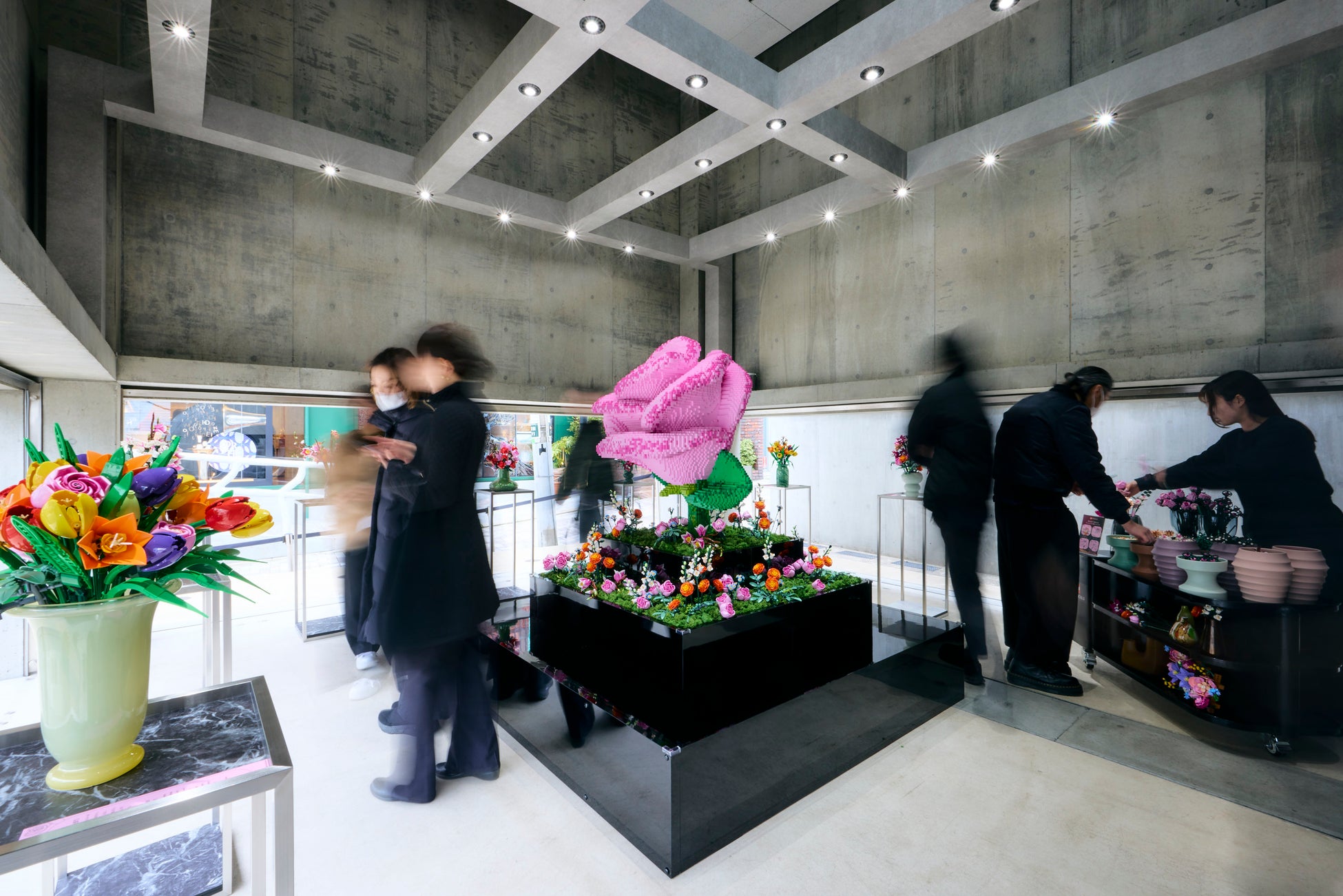 レゴ®ブロックで組み立てた巨大なピンクローズも登場 レゴ®ボタニカル製品に「花言葉」のメッセージ込めた6種類のブーケアレンジを特別展示 原宿が春色に染まる「レゴ®ボタニカル ブルームギャラリー」開催