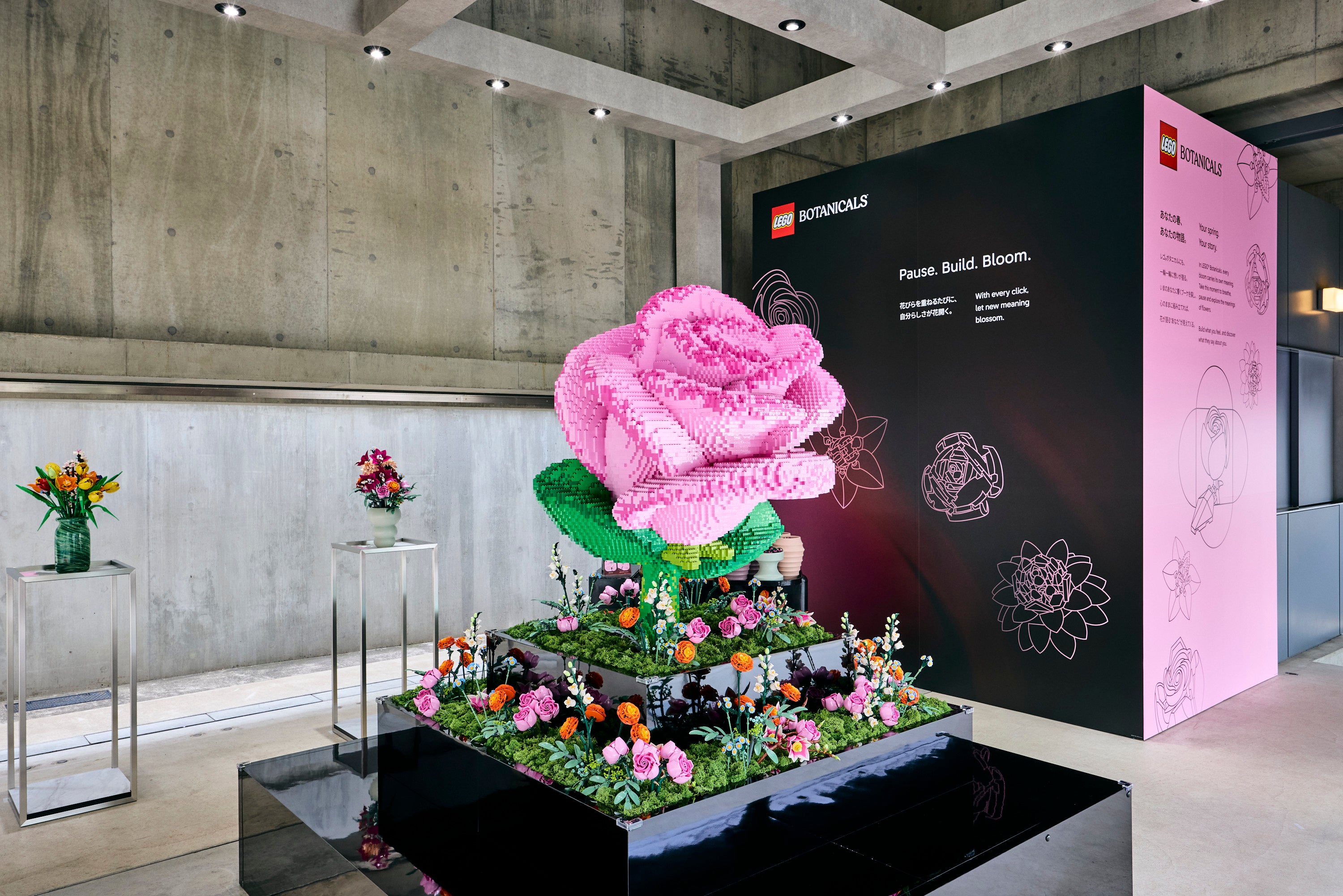 レゴ®ブロックで組み立てた巨大なピンクローズも登場 レゴ®ボタニカル製品に「花言葉」のメッセージ込めた6種類のブーケアレンジを特別展示 原宿が春色に染まる「レゴ®ボタニカル ブルームギャラリー」開催