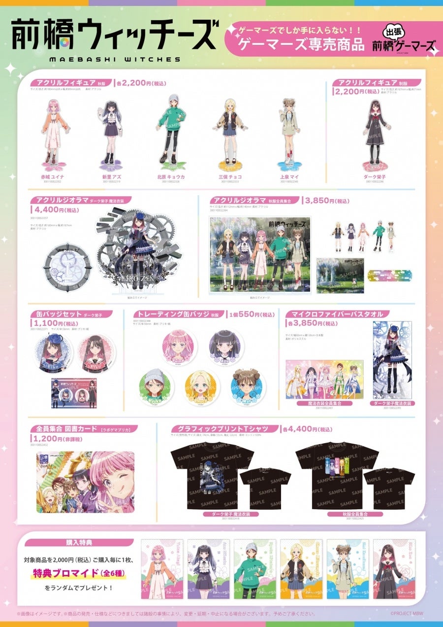 ・「前橋出張ゲーマーズ2026春」にて『前橋ウィッチーズ』関連商品のご購入2,000円(税込)ごとに、特典ブロマイド(全6種)を1枚お渡しいたします。