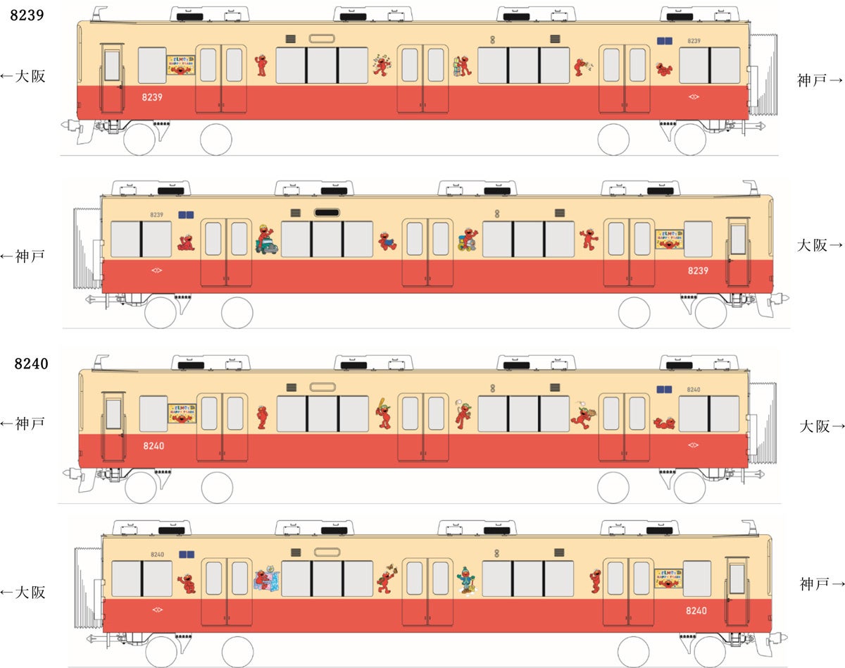 エルモ、クッキーモンスターを施したラッピングトレインを各1編成運行します。