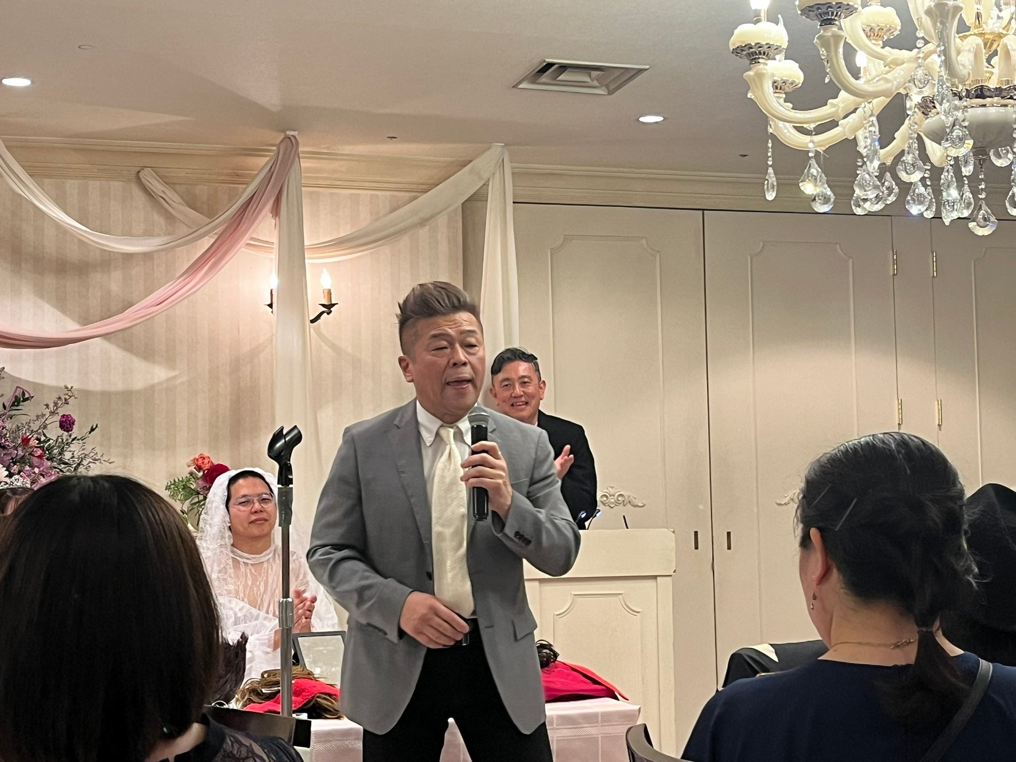 結婚披露宴には余興が付き物、トップバッターは今回主催者のガンリキ佐橋が