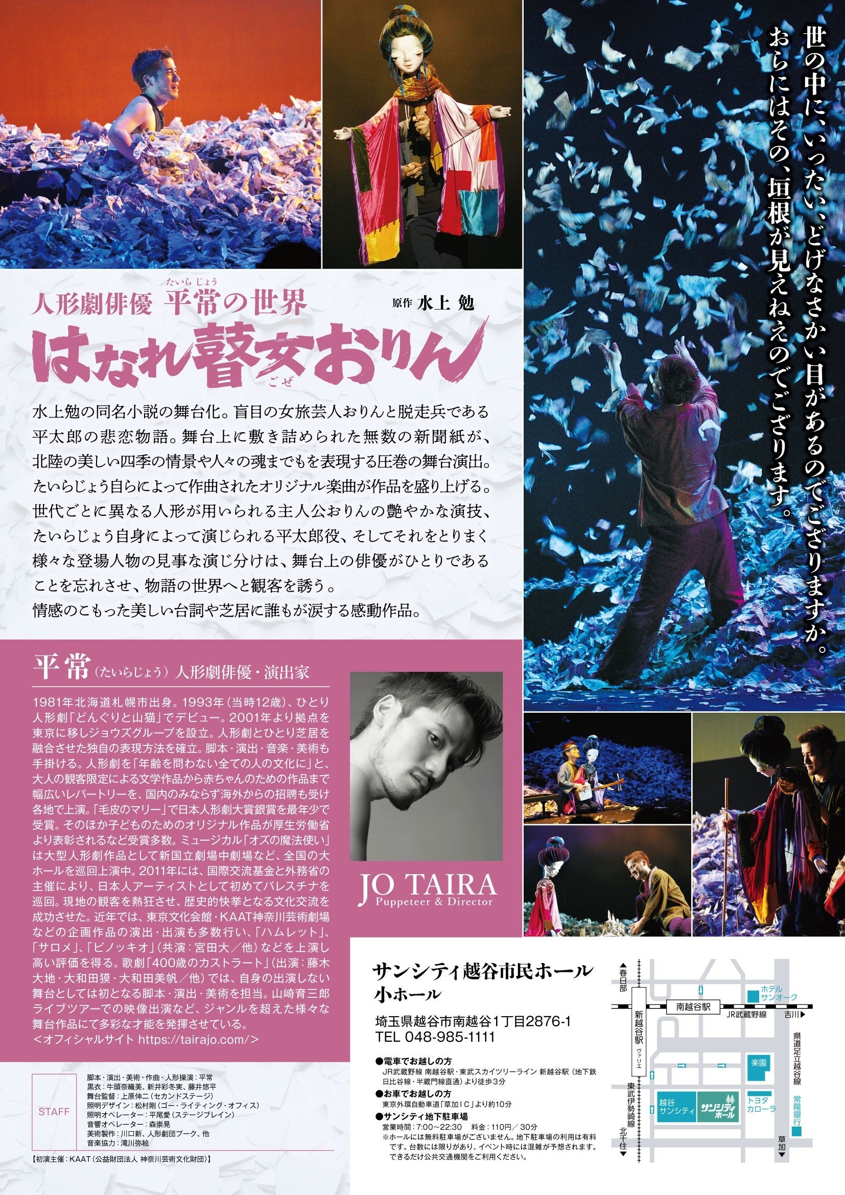 人形劇俳優平常の世界「はなれ瞽女おりん」7年ぶりの再演!