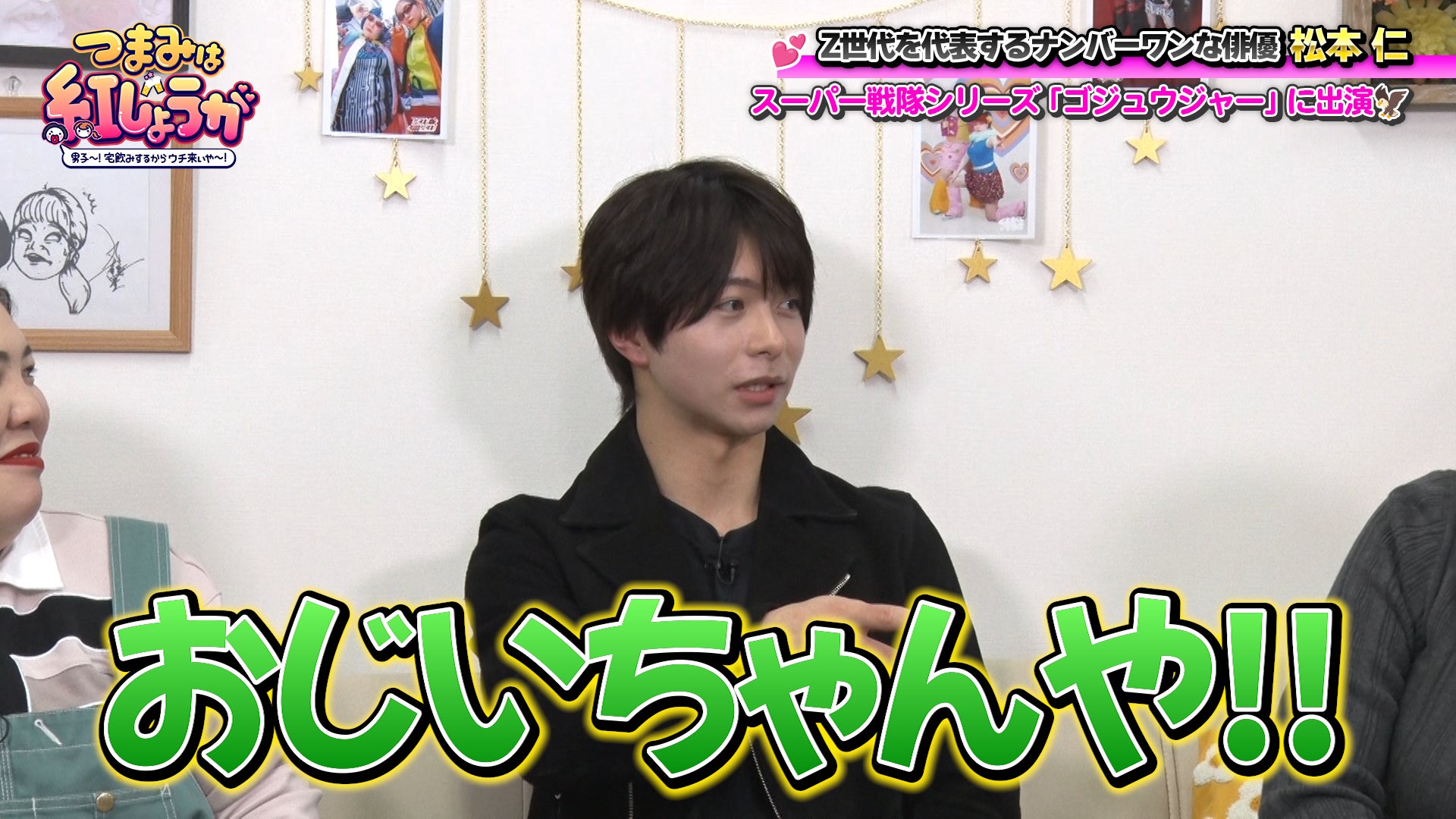 番組後半もプロフィール紹介が続き、特技のダンスや「男子高生ミスターコン」でグランプリのどちらにも関係しているお母さんの話、「学生時代、絶対モテたやろ」話を聞きだす紅しょうが。さらに、バレンタインデーの2月14日が誕生日ということもあって、稲田曰く「エグい」モテ方をしていたと思われる松本に、「第2ボタンの文化はまだ残ってた? 余ってたらちょうだい」と言って笑いを起こす熊プロもお見逃しなく。さらに、出演していたスーパー戦隊シリーズの『ナンバーワン戦隊ゴジュウジャー』撮影裏話も飛び出します。「見た目は17歳だけど中身は87歳」というユニークな設定の役を演じていた松本が番組の反響を感じた瞬間とは?