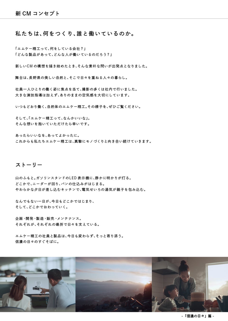エムケー精工株式会社(本社:長野県千曲市、代表取締役:丸山将一)は、2026年3月20日(金)より、新CM「信濃の日々」篇を公式YouTubeチャンネル「MKseikoChannel」にて公開します。2026年4月3日(金)からは、長野県内のテレビ番組で順次放送予定です。