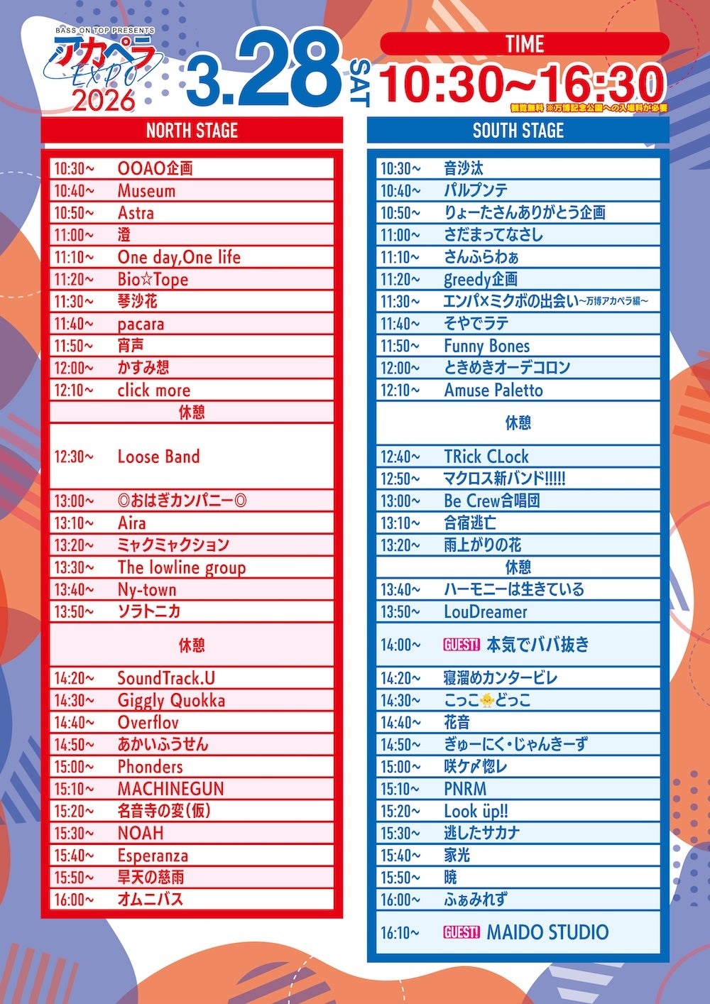 スペシャルゲストに全国ハモネプ大リーグ2025にて優勝を果たした「本気でババ抜き」と関西発のアカペラYouTubeチャンネルとして活動する「MAIDO STUDIO」を迎え、2ステージにて盛大にアカペラのハーモニーを響かせます。