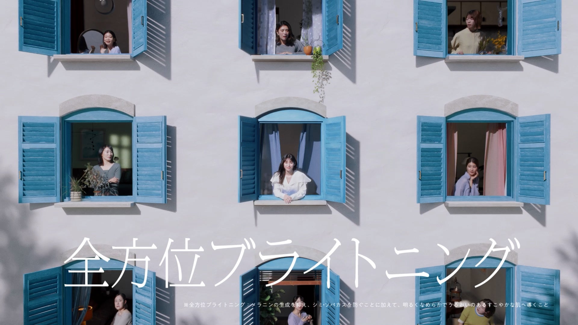 「ブライトニングに迷えるすべての人へ」という言葉とともに、鮮やかなブルーの窓を開く白石聖さん。同じ建物内の別の部屋には、ブライトニングケアの正解が分からず悩む「ブライトニング迷子」たちの姿があります。そんな「ブライトニング迷子」たちを導くように、白石聖さんが「だったら、全方位ブライトニング」と力強く呼びかけます。「フェアルーセントはシミも透明感も全方位ケア」というナレーションでは、あらゆるブライトニングの悩みに寄り添う、フェアルーセントの魅力を訴求。終盤、さわやかな光が差し込む窓辺で、明るくイキイキとした表情を見せる白石聖さんにも注目です。最後は「さあ、はじめよ」というメッセージとともに、降り注ぐ光を味方につけるように、フェアルーセントの4アイテムが登場します。