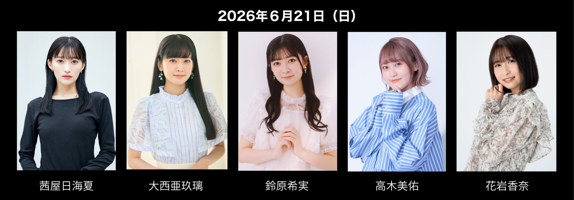 茜屋日海夏、大西亜玖璃、鈴原希実、高木美佑、花岩香奈(五十音順)