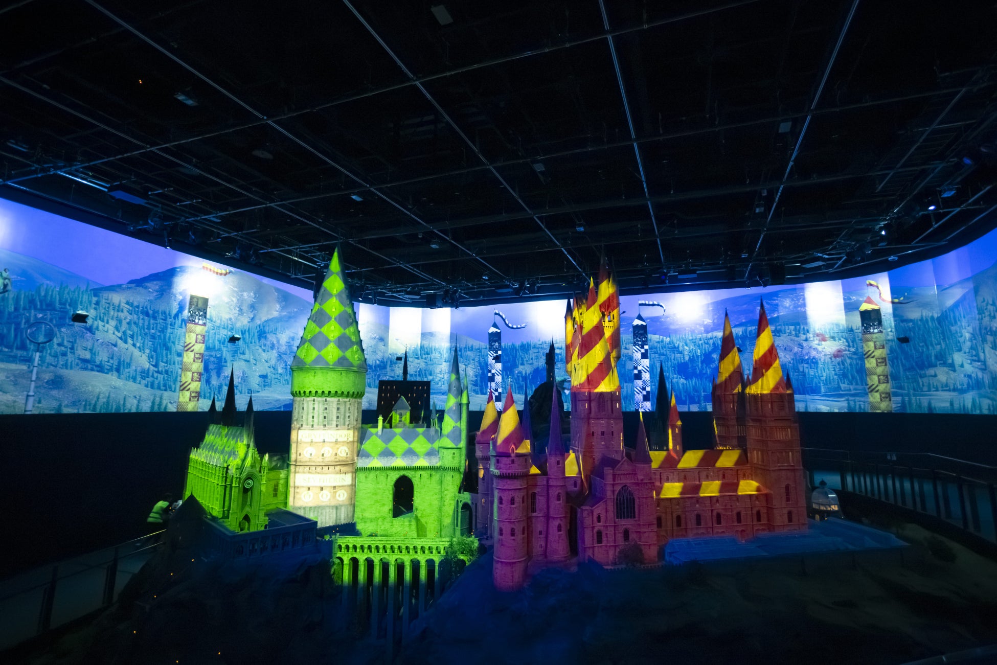 ■ホグワーツ城の模型にはクィディッチのプロジェクションマッピングの演出も登場