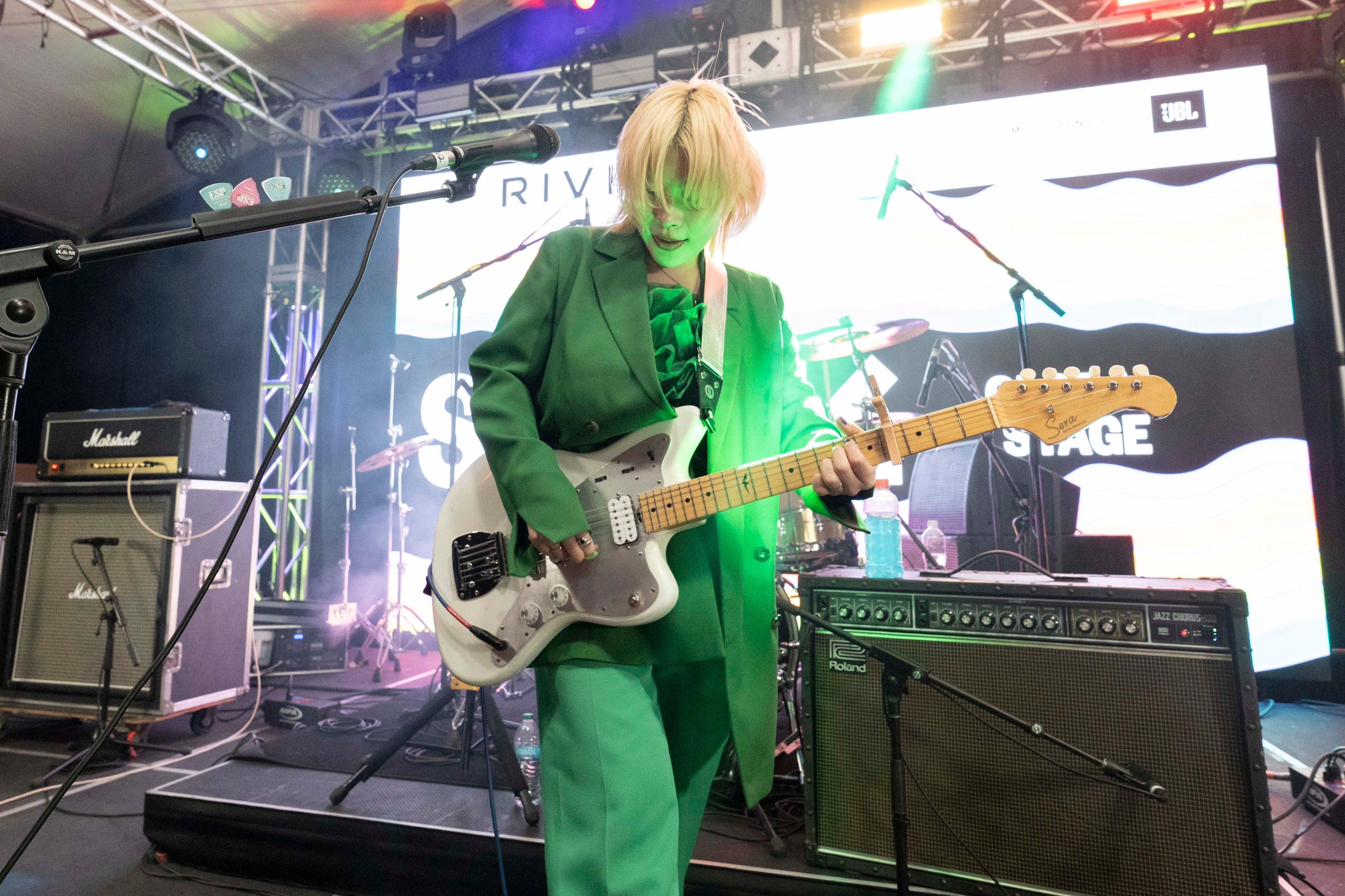 今年で40年目という節目を迎える「SXSW」を祝福するかのように、カラっとした晴天が続くオースティン。定刻の19時、Downlight Austin Backyardの野外会場「Global Stage」にシンガーREJAYが登場した。REJAYは、昼に行われた日本貿易振興機構(JETRO)主催の日本カルチャー体験プログラム「SXJP: Infusion Japan」にも出演。そこではアコースティックギターを弾きながら、語りかけるように歌う彼女の歌声に、フロアからは思わず“Such a beautiful voice…”とため息交じりの反応が溢れた。夜のステージでは、心地よい夜風に髪をなびかせエレキギターで披露した「Middle of the night」で、センチメンタルなサウンドが会場を包み込んだ。