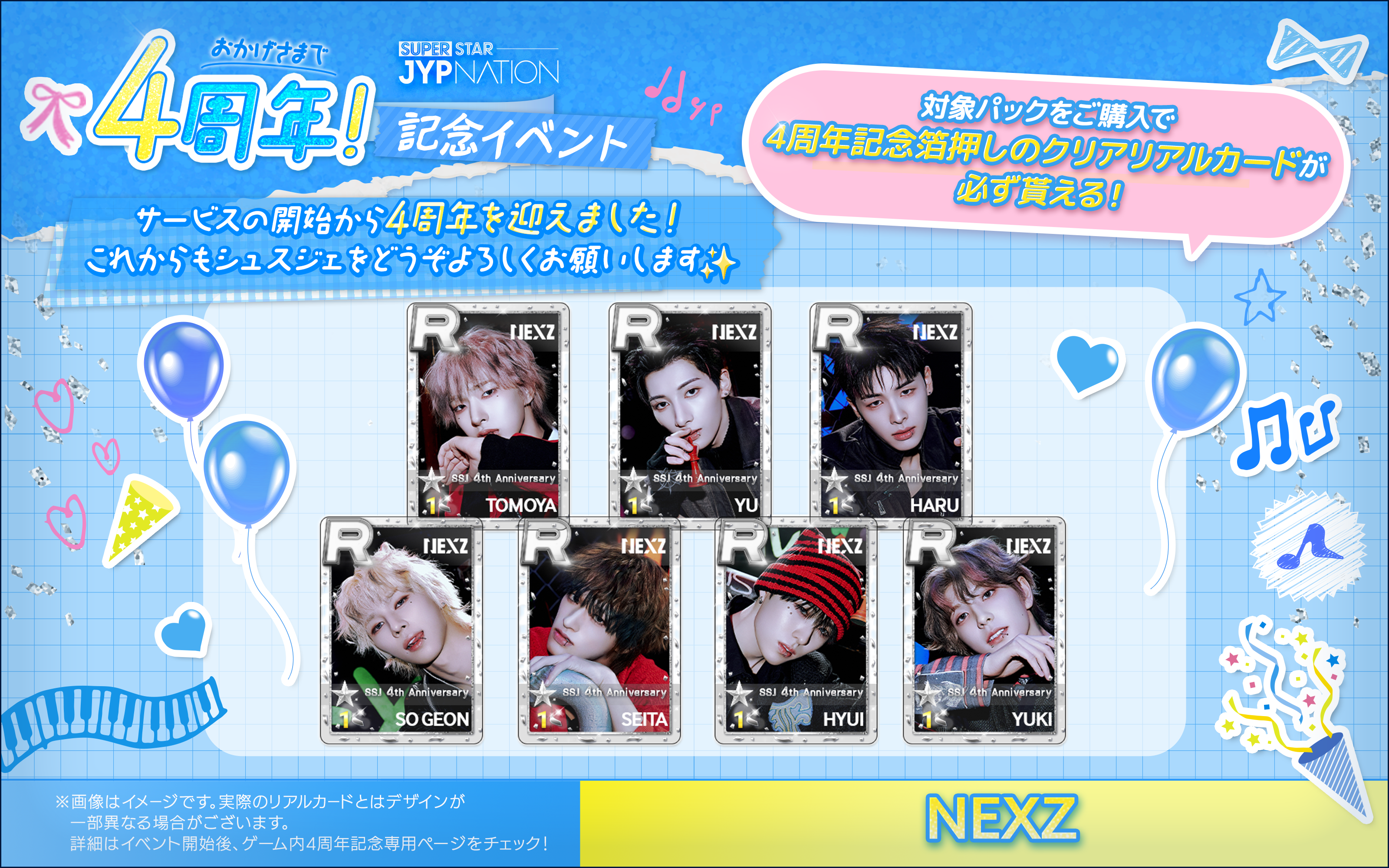 株式会社DalcomSoft Japanは、J.Y. Park、2PM、TWICE、Stray Kids、ITZY、NiziU、NEXZが所属する、JYP エンターテインメントの公式リズムゲームアプリ『SUPERSTAR JYPNATION』(公式サイト:https://superstarjyp.jp)において、サービス開始より4周年を迎えることを記念して、本日(2026年3月18日)より4周年記念イベントを開始したことについてお知らせいたします。