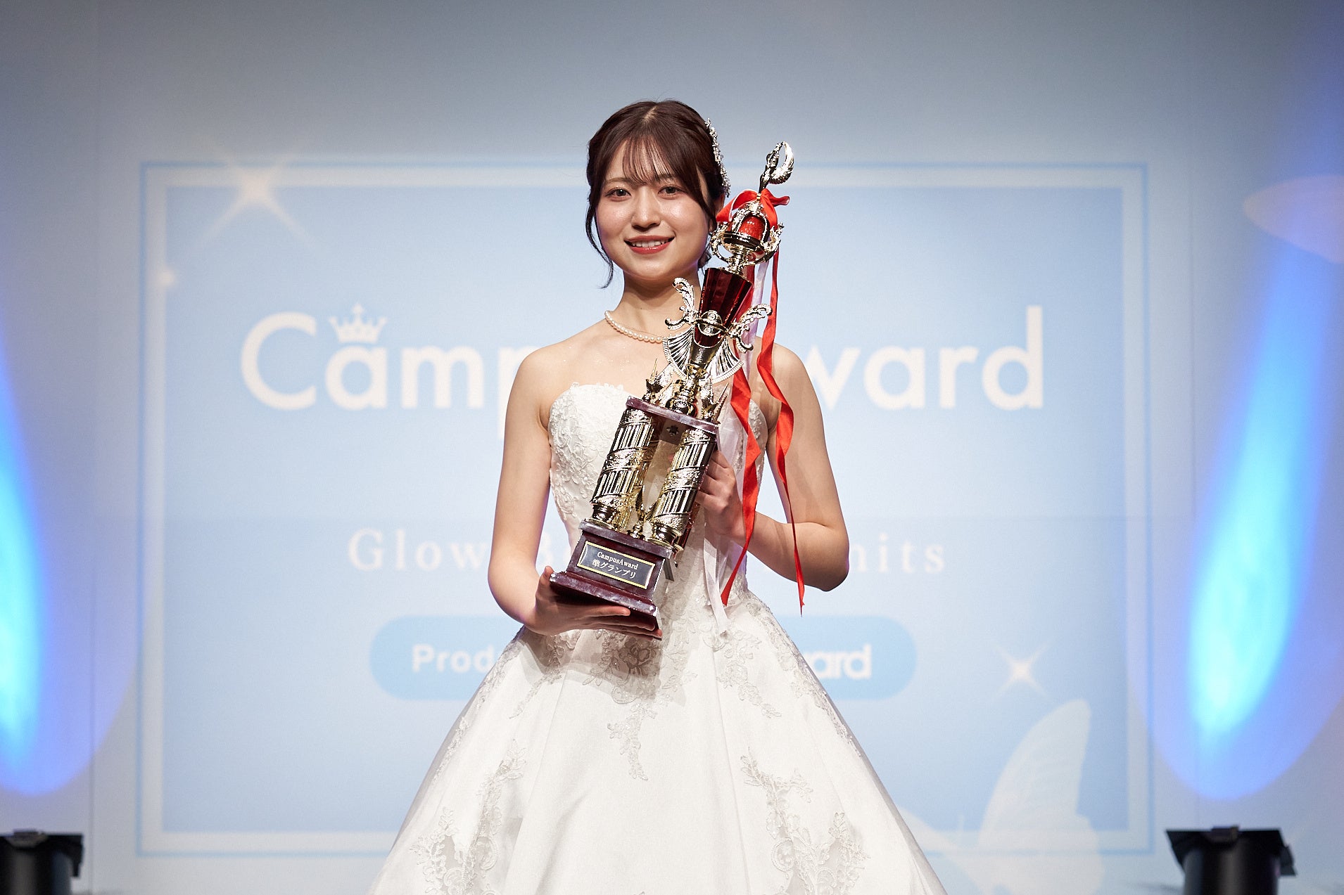 野月まひるさんは「去年「CampusAward」に参加して準グランプリだったことがすごく悔しかったので、今回はリベンジの気持ちで参加しました。だからこそ苦しいことや辛いことも多かったのですが、いろいろな方々にたくさん支えていただき、掴み取れたグランプリなので、本当に頑張って良かったなと思います。ここまで応援してくれたみなさんに感謝の気持ちでいっぱいです。ありがとうございます。グランプリとったぞー!」と受賞の喜びを語りました。