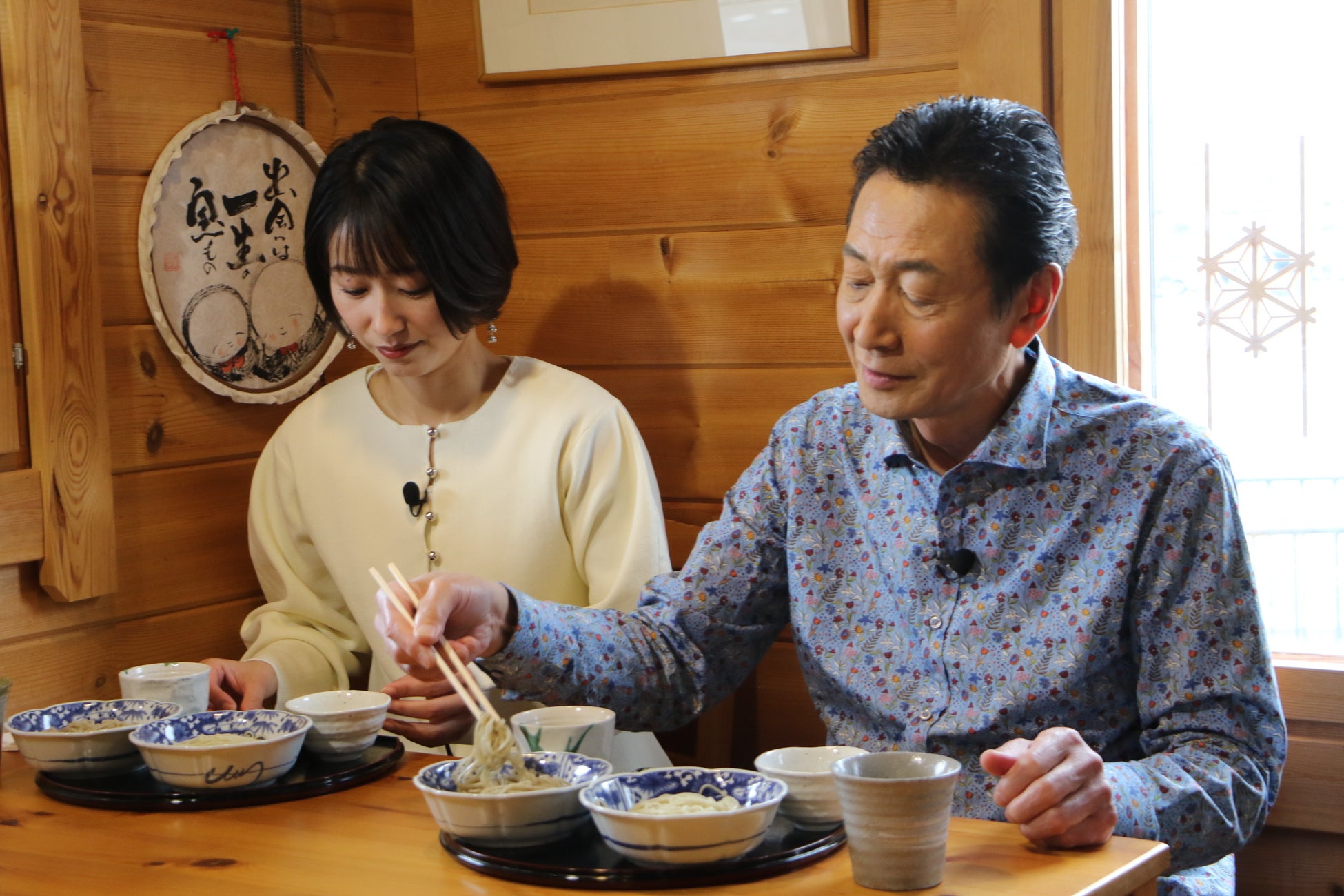 いただくのは、長浜で採れる「常陸秋そば」を使った『二種盛十割蕎麦』。蕎麦の実を殻ごと挽いた『田舎蕎麦』はコシが強い!つゆをつけずに食べる方もいるそうです。続いて、殻を省いた『抜き身蕎麦』をいただくと…こちらは上品な味わい!また違った美味しさが味わえます。