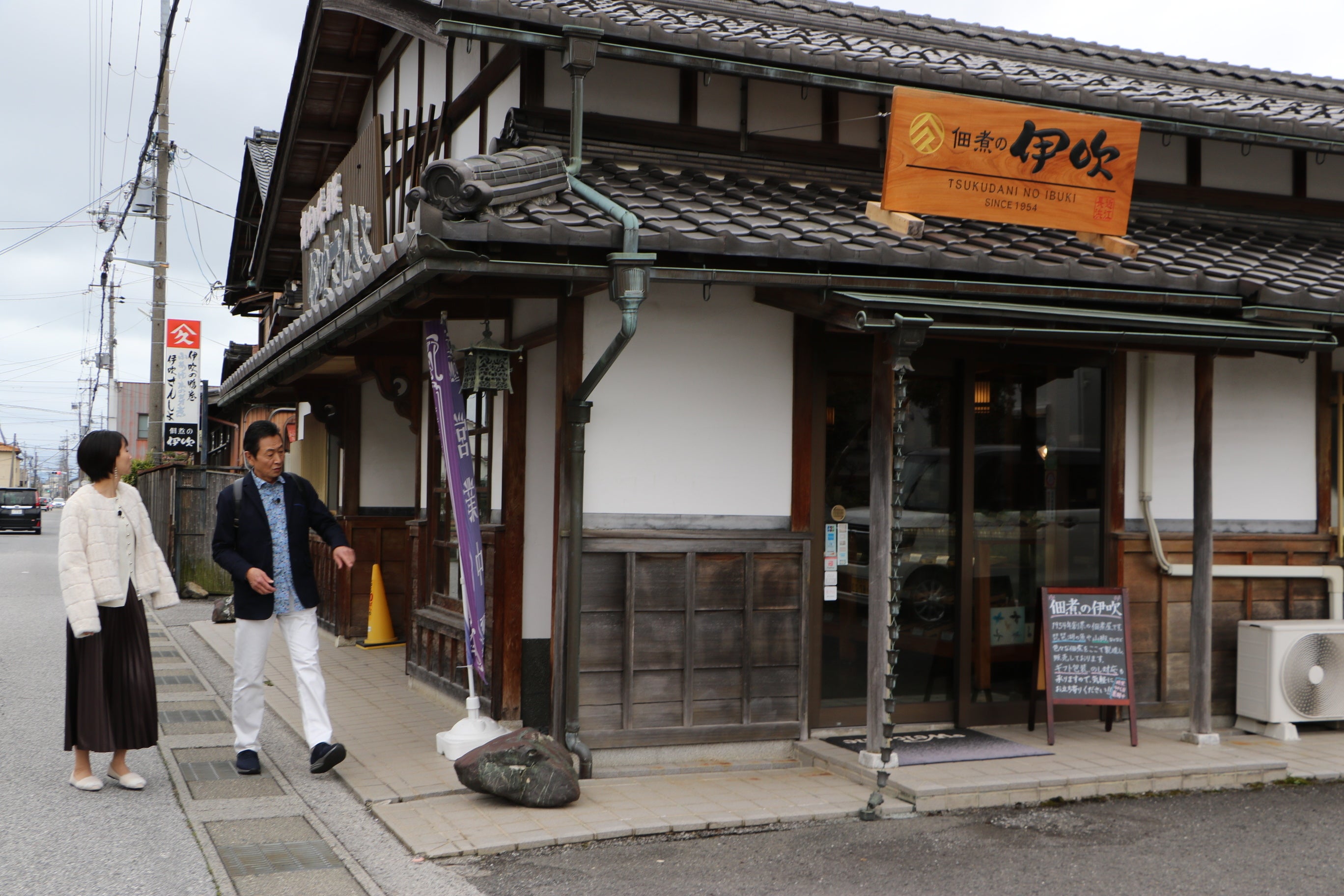 続いてやってきたのは、1954年創業の老舗佃煮店【佃煮の伊吹】。お店では、琵琶湖の魚や伊吹山で採れる山菜など、滋賀の恵みを丁寧にじっくりと炊き上げています。