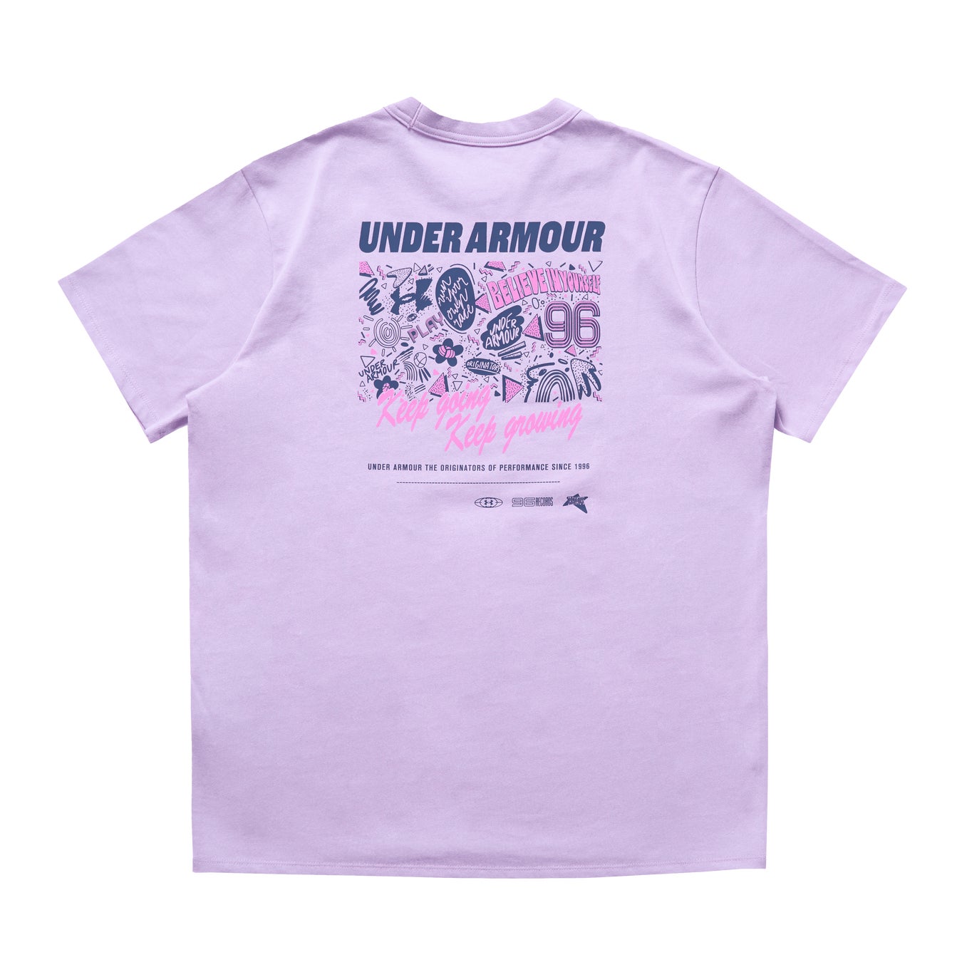アスリートに支持されるUNDER ARMOURから、90年代特有の手書き風レタードや幾何学模様を散りばめたポップなデザインが登場。スポーツブランドが本気で表現した「レトロポップ」という新鮮なギャップと、淡いカラーリングが魅力です。