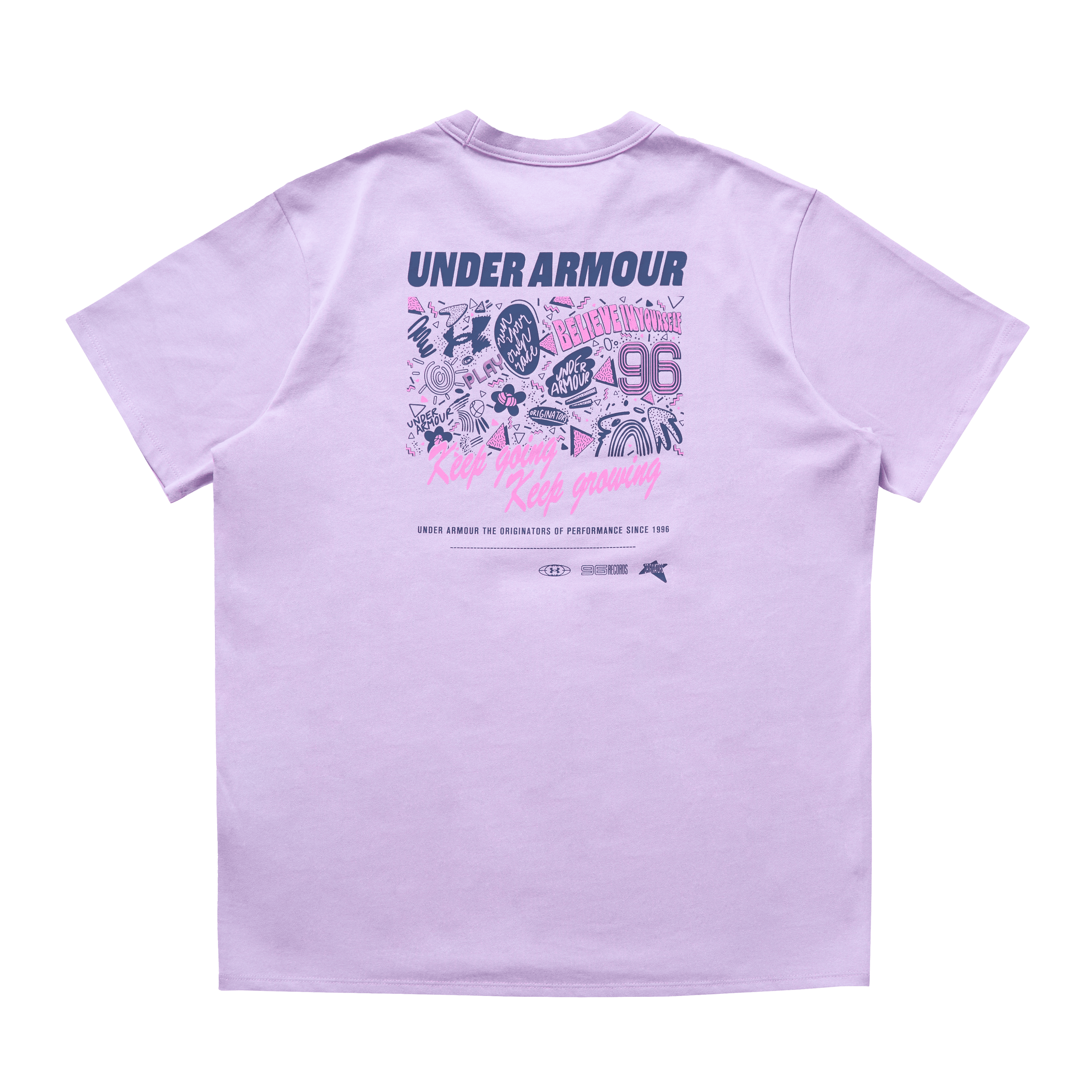 アスリートに支持されるUNDER ARMOURから、90年代特有の手書き風レタードや幾何学模様を散りばめたポップなデザインが登場。スポーツブランドが本気で表現した「レトロポップ」という新鮮なギャップと、淡いカラーリングが魅力です。