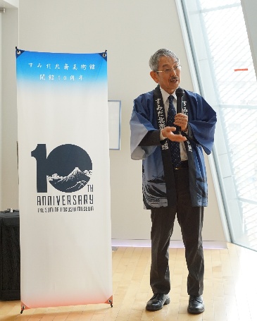 10周年記念ロゴを紹介する大久保館長
