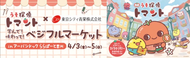 豊洲市場直送の旬野菜やフルーツが大集合。会場には期間限定の「うそ探偵トマント」装飾も登場し、見て、買って、味わって楽しめるマルシェを開催します。