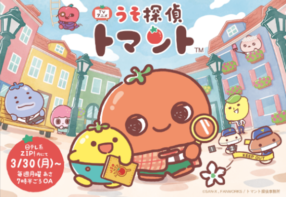 「うそ探偵トマント」は、サンエックス株式会社と株式会社ファンワークスが共同で手掛けるキャラクターです。やさいやくだものをモチーフとしたユニークなキャラクターたちが登場する、かわいらしさと本格ミステリー要素を掛け合わせた作品で、幅広い世代にお楽しみいただける“かわいい×ミステリー”の新ジャンル作品です。