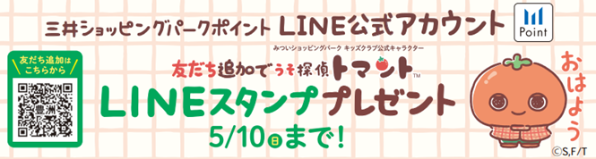 内容:三井ショッピングパークポイントLINE公式アカウントを友だち追加で、『うそ探偵トマント』 LINEスタンプをプレゼント