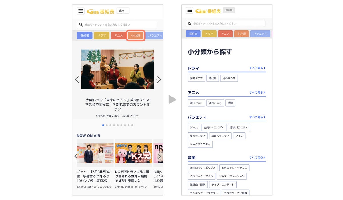 「番組表.Gガイド」”観たい”に最速アクセス!小ジャンル一覧ページを新設。野球・サッカーなど詳細ジャンル絞り込みが可能に